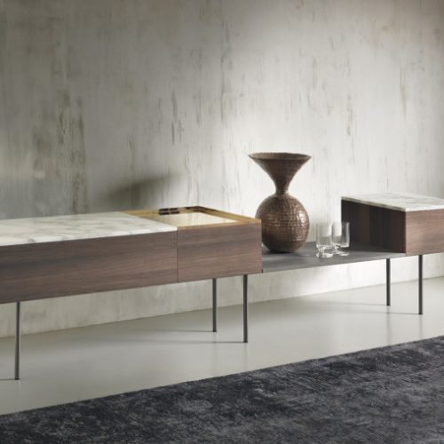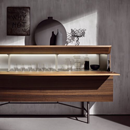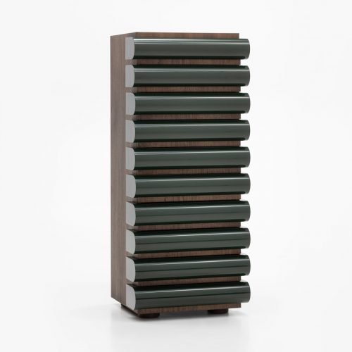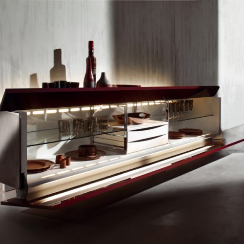 For Acerbis, any tension between the concepts of form and function vanish within each piece, as the utilitarian act of opening a cabinet is transformed into an unexpected experience through the use of proprietary opening mechanisms. Under the leadership of Encrico Acerbis, the company combines unyielding research for innovative technical solutions with a timeless design sensibility passed down through four generations. The entire Acerbis catalog offers a range of solutions offering clean and balanced lines, often unexpected combinations of modern surfaces, and always, a tactile experience born from advanced technical details.