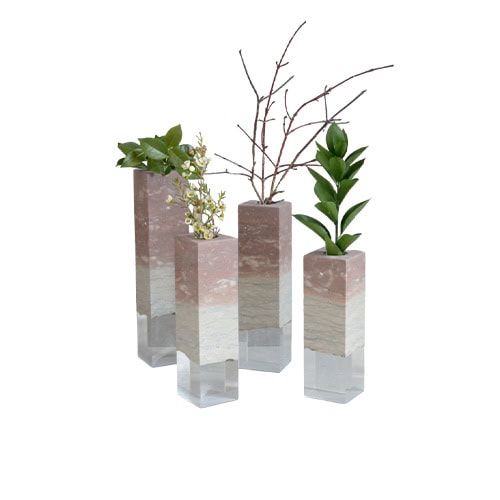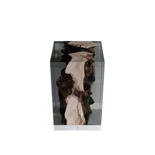 alcarol transforms nature’s fleeting moments into timeless design, blending cutting-edge techniques with traditional craftsmanship. Founded in 2013 by Andrea Forti & Eleonora Dal Farra, alcarol works between the Venice Lagoon and the Dolomite mountains, selecting and preserving local wood, stone, moss, and other raw materials exactly as found in their habitat. In every creation, they capture a specific Genius Loci – the spirit of a place. Each piece becomes an environmental cross-section, unveiling hidden beauty, textures, scents, and stories suspended in transparent stillness, echoing the whispers of its origin. A wide range of customizations brings every creation to life within unique projects.