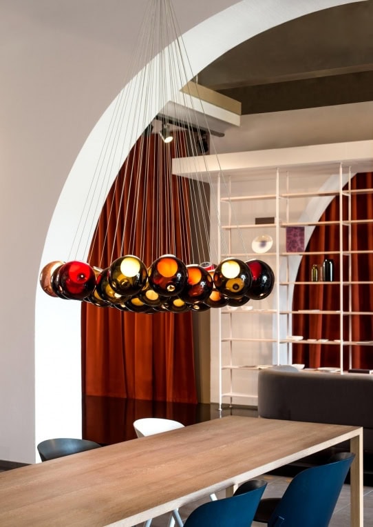 28 Cluster is suspended using coaxial cable and composed in hexagonal clusters in numerous configurations.