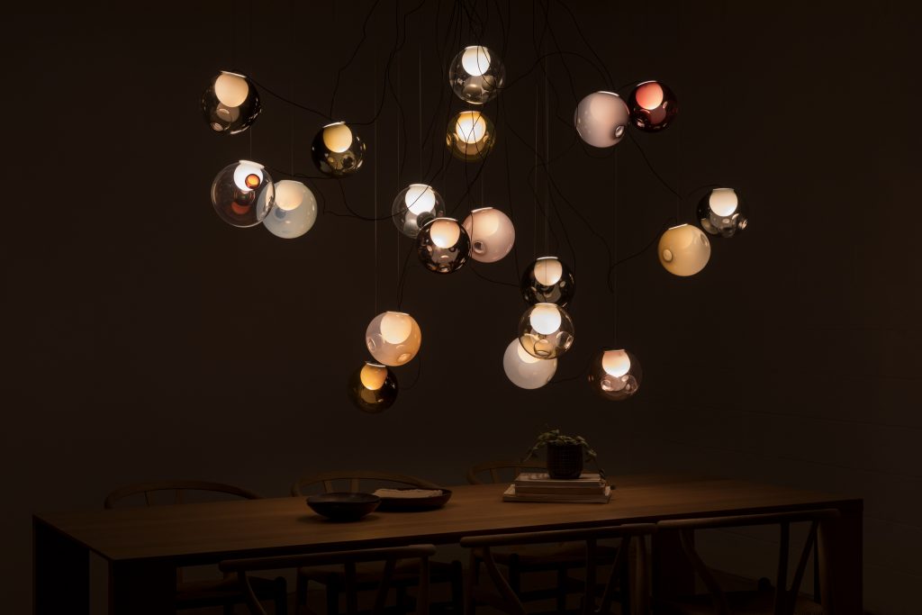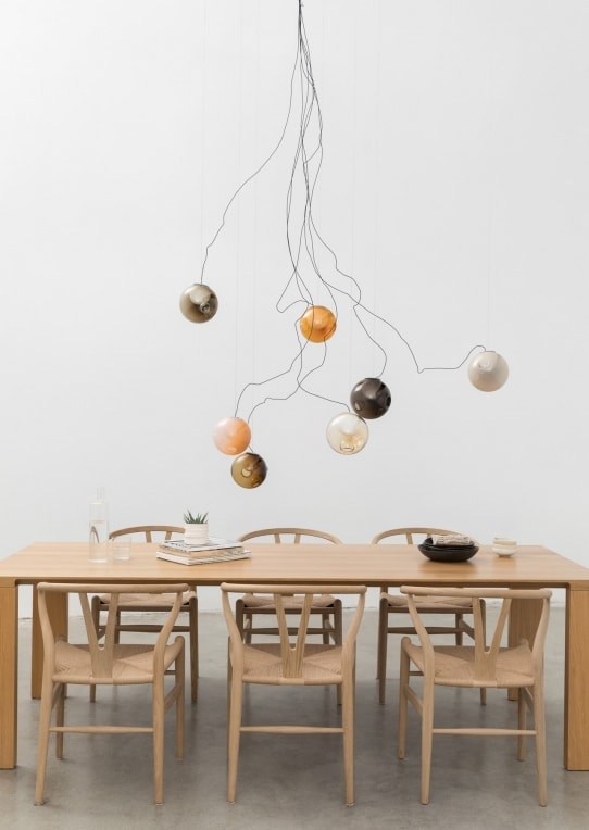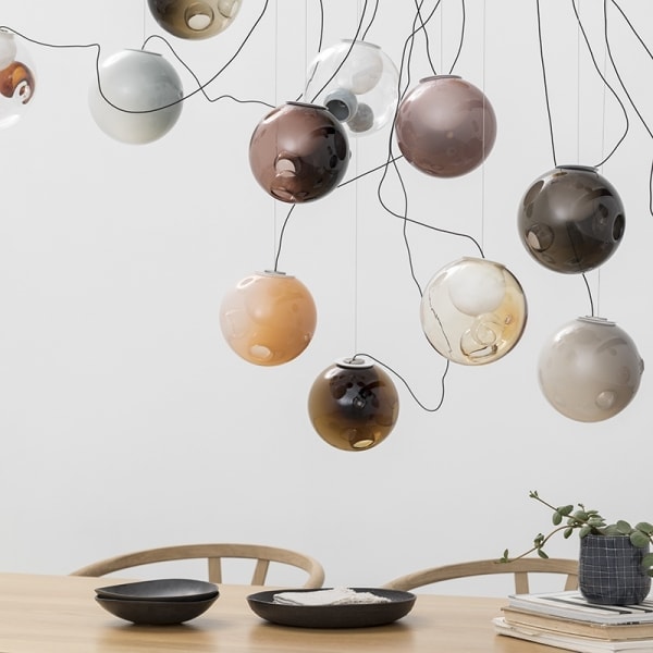 The 28 stem system allows for floor, ceiling or columnar installation. Columnar installation available as a a spring-loaded floor to ceiling application. Floor version can be plugged into a wall outlet for maximum flexibility. All versions include integral dimming system. Available in black or brass finish with a variety of pendant options.