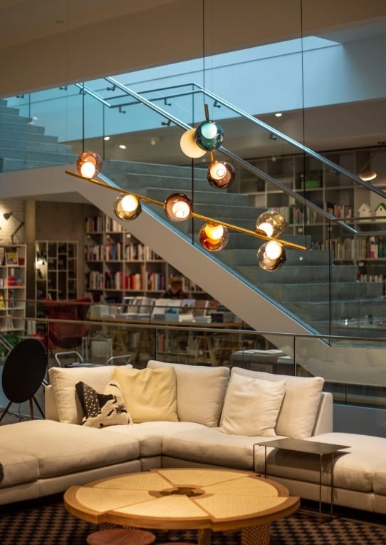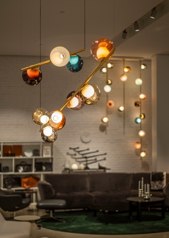 The 28 series stem suspended system comes in a brass or black finish and a variety of suspension options ranging from vertical ceiling-mounted stems to suspended horizontal stems. This system offers many options in terms of length and number of pendants.