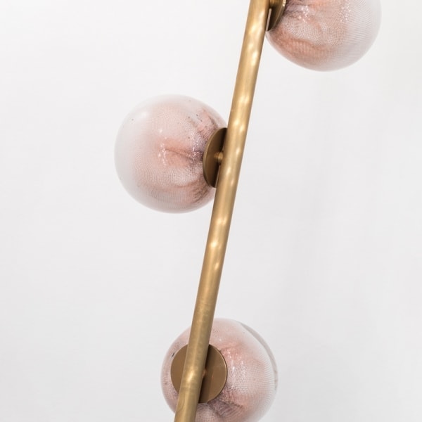 The 84 series stem column system comes in a brass or black finish, two different configurations and multiple height options. The spring loaded spike system allows for both vertical and angled installation. The semi-rigid black fabric cord includes a patented integral 360 degree dimming system housed within a sleek brass cylinder.