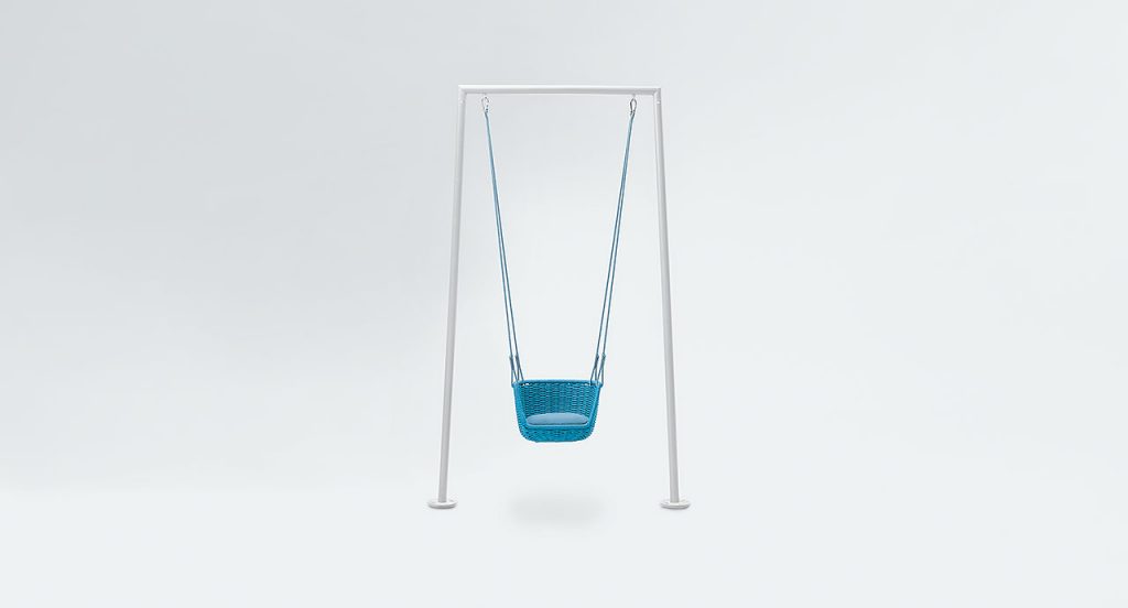 Suspended seat. - Structure: stainless steel AISI 304. - Structure upholstery: fixed cover hand woven with Rope cord. - Seat cushion: removable, in water repellent polyester with polyurethane insert. - Seat cushion upholstery: removable cover in the fabrics Luz, Rope T, Brio, Thea or Wara. - Suspension cords: core in technical yarn, provided with stainless steel fastening system. - Cords cover: Rope yarn in cemento/ghiaccio, viola/grigio, terracotta/arancio, grigio/silver or verde erba/arancio colours. The yarn used to sew the cords is always arancio colour. - Notes: Adagio is not a toy, therefore it is not suitable for children. The seat Adagio can be hanged to a specific structure made of stainless steel matt varnished in avorio or in grafite, mora, ruggine, sottobosco, oliva or foresta colours or even gloss varnished. The structure is provided with base plates for the fixing to weight bearing surfaces. - This product can be used also in interior environments. - We advise to use a loose cushion for enhanced comfort and a Winter Set protection cover.