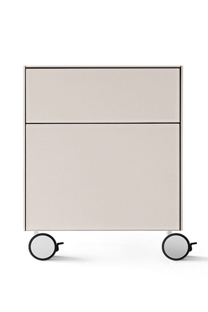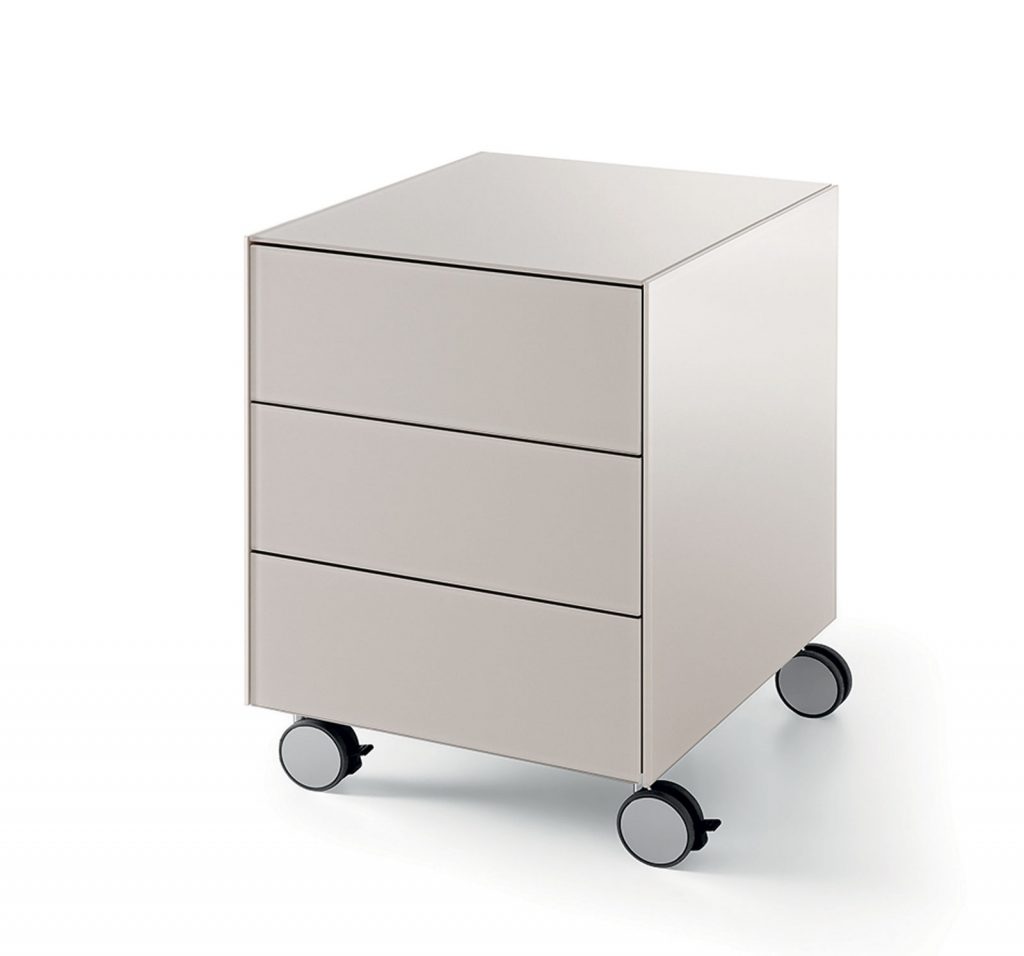 Drawer unit with pull-out and push-pull drawers. Available with drawer for hanging files. (For Usa only 'letter size' version available). Version with pedestal to be placed underneath the desk Air Desk, on request.