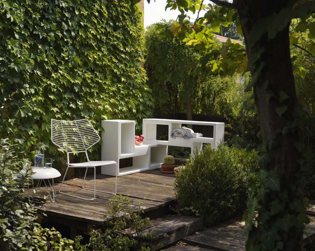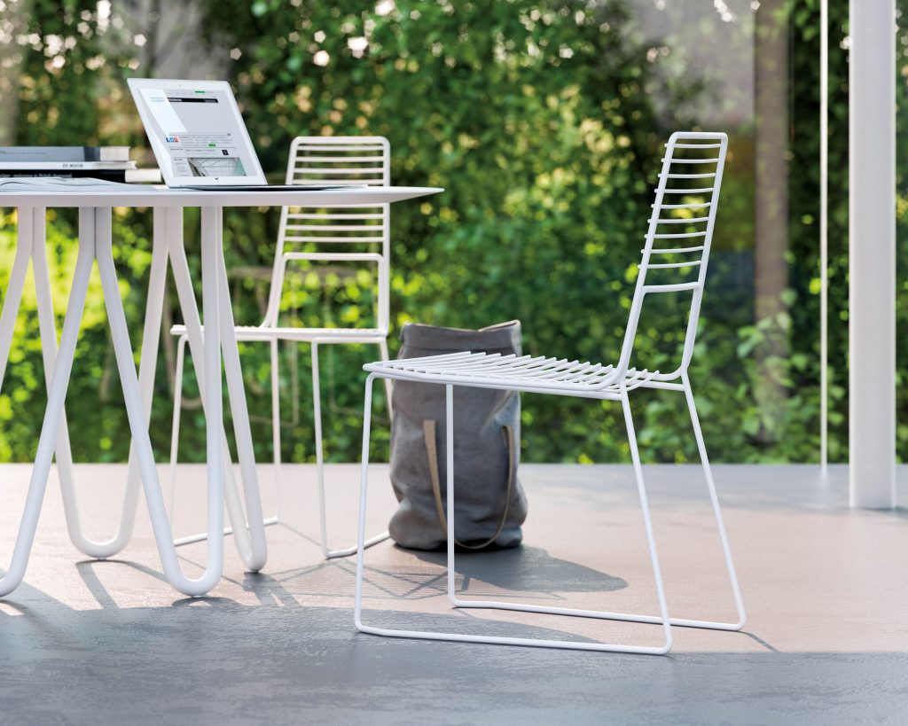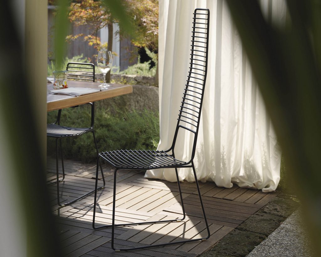 Alieno Peacock is a comfortable lounge chair made of painted metal suitable for outdoor use. The term Alieno comes from the Latin alius meaning other the meaning of the word relies on the idea of contrast. It is interesting to give a friendly shape to this otherness as it is an appealing thought to accept the other or alien. Alieno is also available as a chair (Alieno) or as a chair with high-backrest (Alieno High).