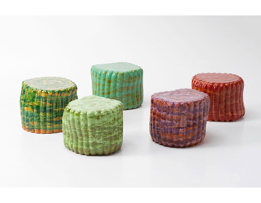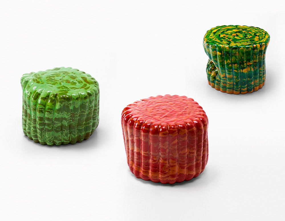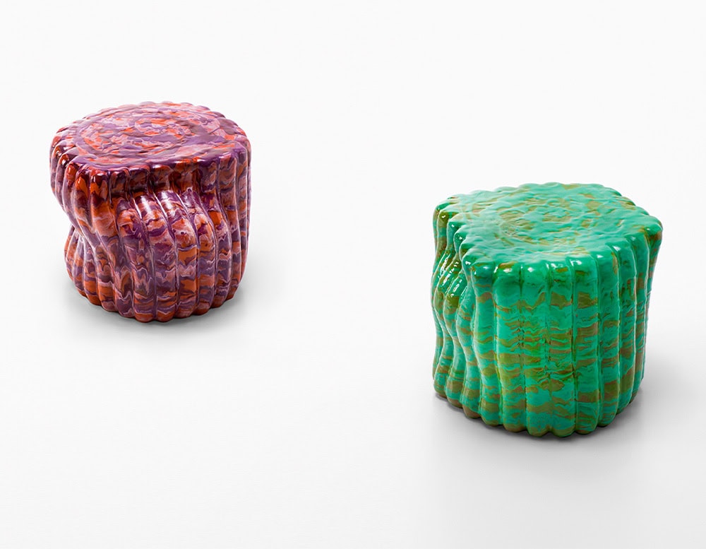 The material, the particular handwork and the production technique used for the Anemone side table lead to colour, shape and design differences between tables, even from the same batch and typology. The irregularity and the uniqueness of each item are sought after and are the featuring characteristics of this series.