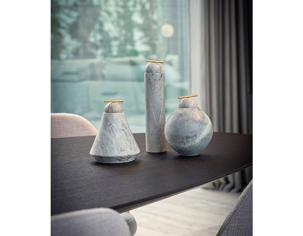 The AOI-Vases are the result of a collaboration between the Brazilian jewellery designer Tatiana Queiroz and Marcelo Alvarenga and Susana Bastos, founders of the ALVA design studio. Cleverly fusing their backgrounds in architecture, object and jewellery design, they eloquently translate soapstone into a universal, timeless and contemporary design language.