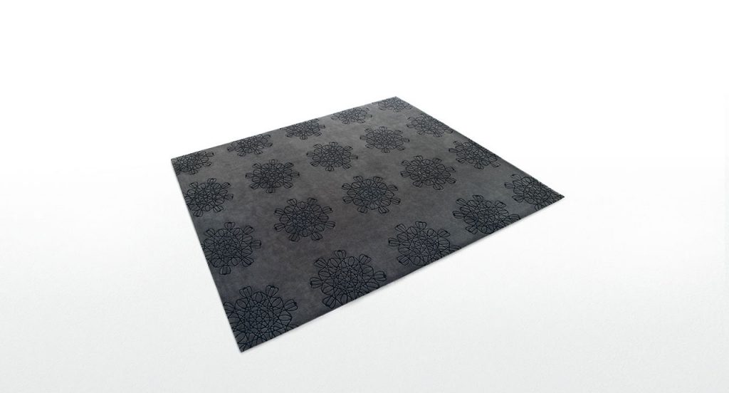 Arabesque is a hand tufted rug. The floral patterns which decorate the rug in an orthogonal placement are hand carved in the wool surface. The outline of the design is produced tone-on-tone and is lighter and deeper than the rug area. Only one colour can be chosen.