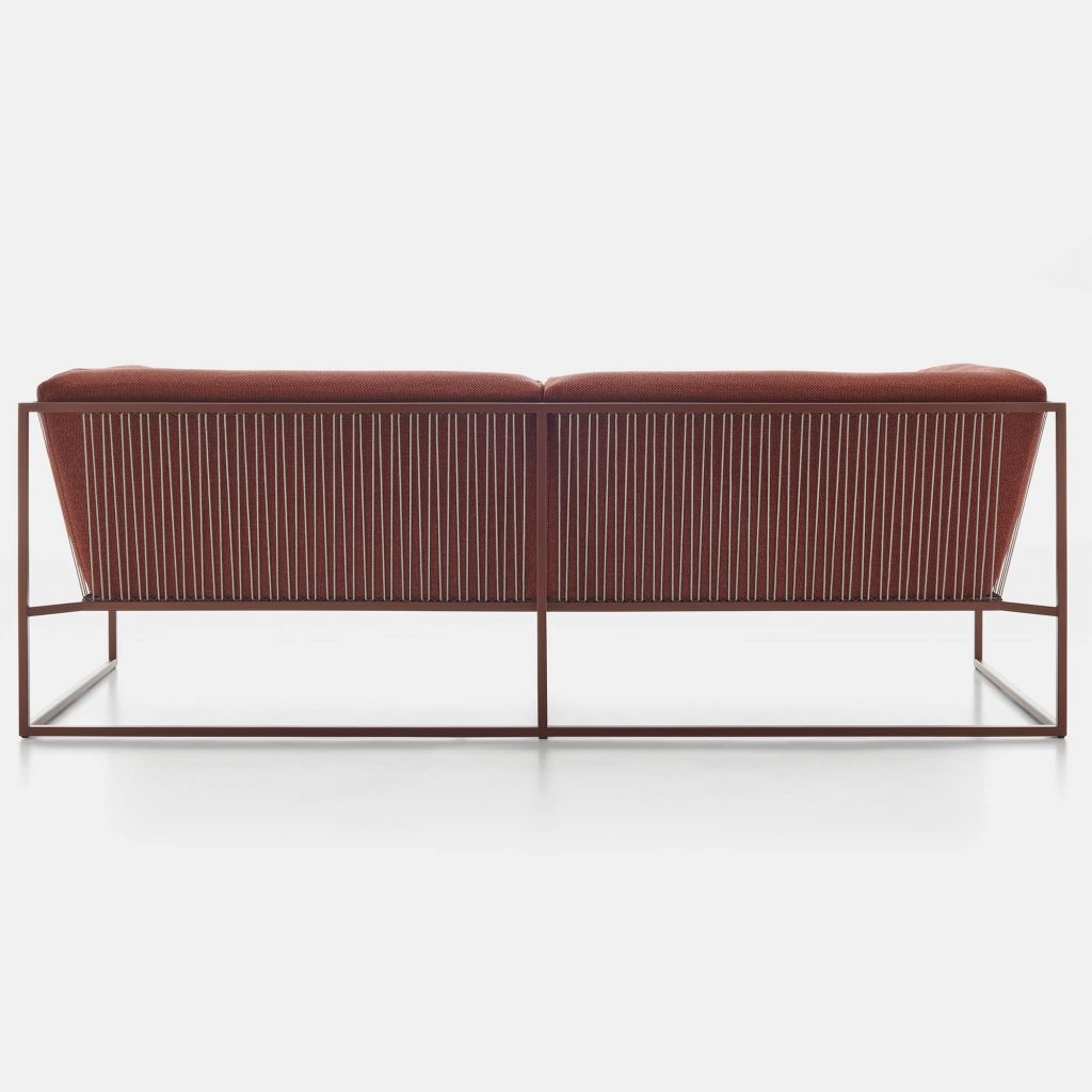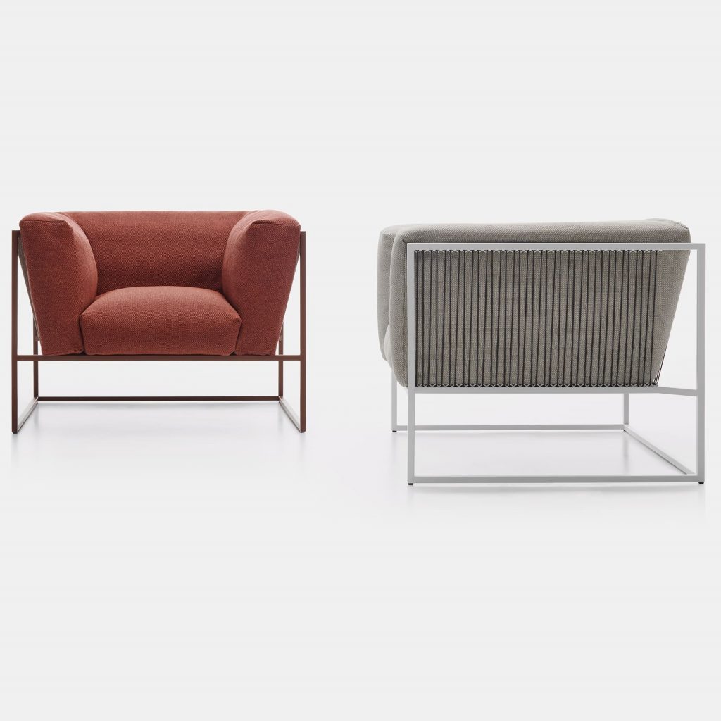 As its name implies, ARPA Collection is inspired by the harp, one of the most beautiful and mesmerizing musical instruments. Unlike the meticulous work involved in manufacturing a harp, in designing this collection, rigorous paring down was applied, resolving each piece with the least possible number of elements. ARPA collection combines the stability of the orthogonal external shape with the softness and comfort of the inner cushion shell. The thin strings add elegance and fineness to every piece, giving a special sense of lightness, as if the whole cushion mass was hanging from the structure. Designed to be timeless, ARPA aims to become an icon, not only for aesthetical reasons, but also for its functionality and comfort.