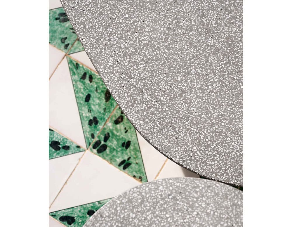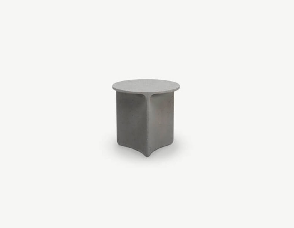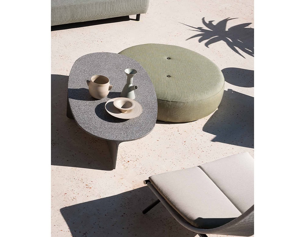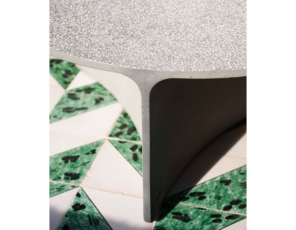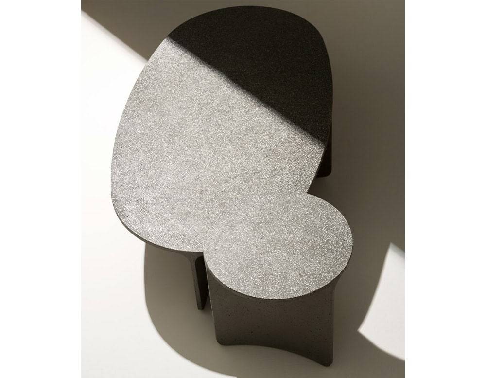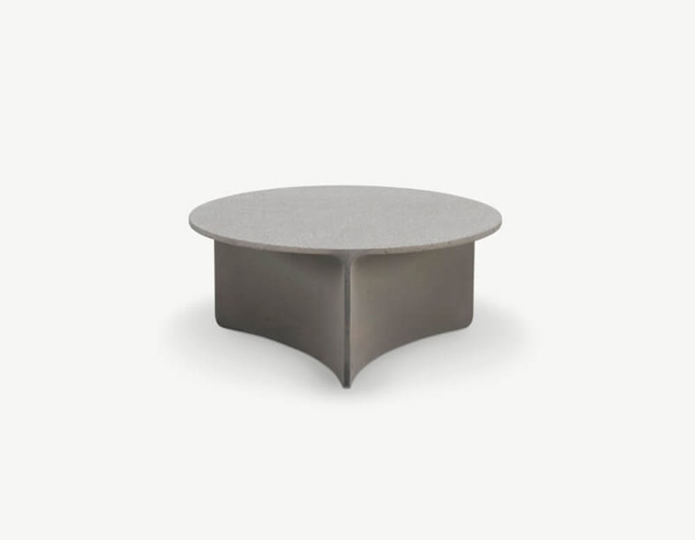 ASPIC includes three extremely versatile tables, two with round tops in different sizes and the other one in a larger oval version, whose concrete structure gives a sense of stability and durability in sharp contrast to the visual elegance of the tops and the concave lines of the base.