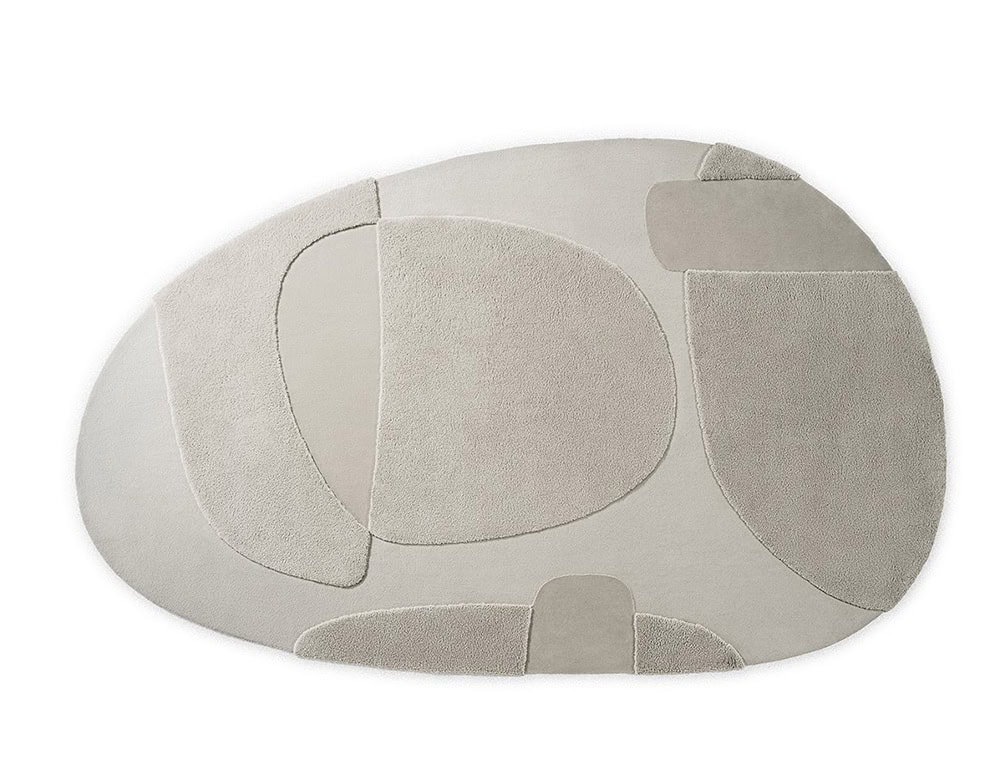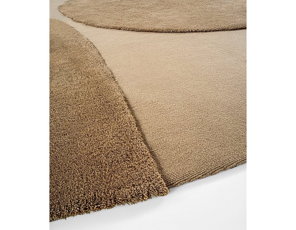 Hand tufted rug made from New Zealand wool. Ato is characterized by an abstract geometric pattern that is created through differences in pile textures and heights. Available in three colours "sand", "dune" and "dust" made through natural dyes. Customized dimensions are available upon request.