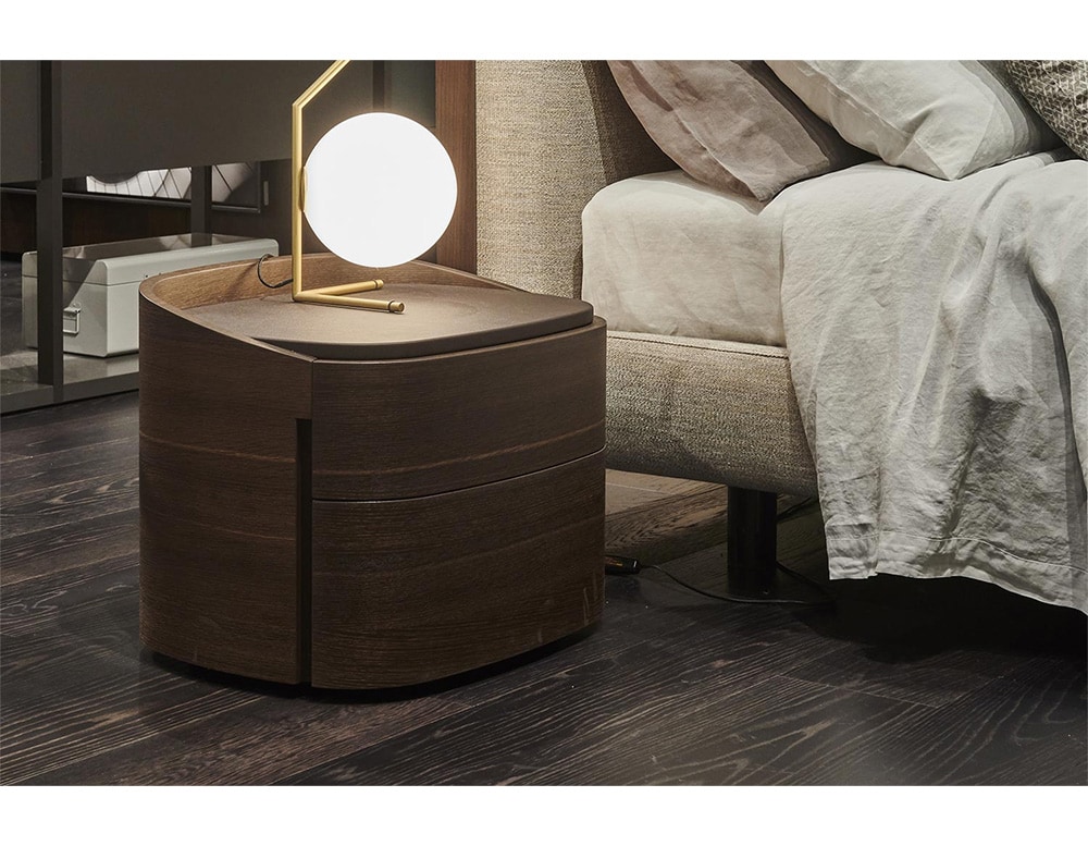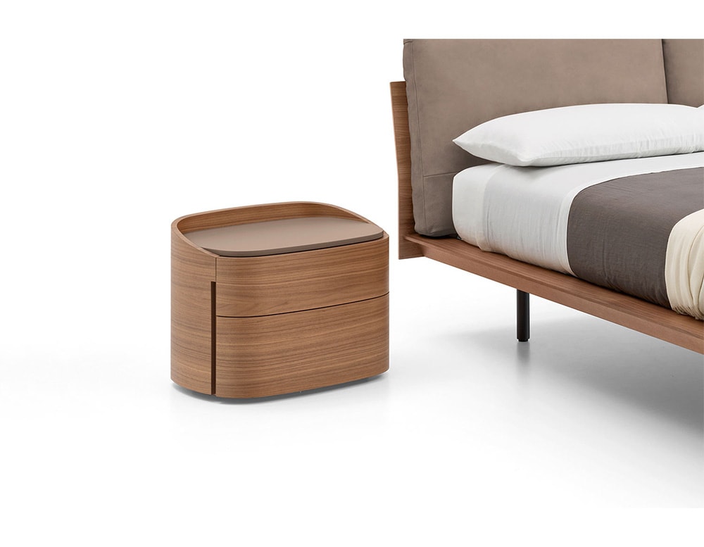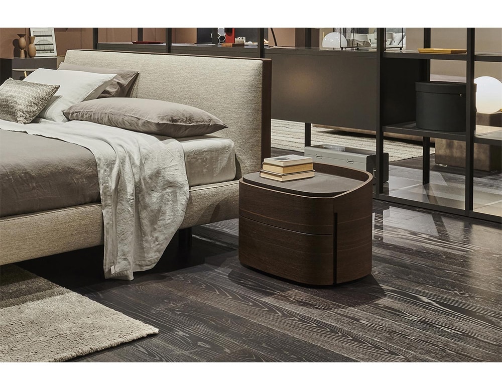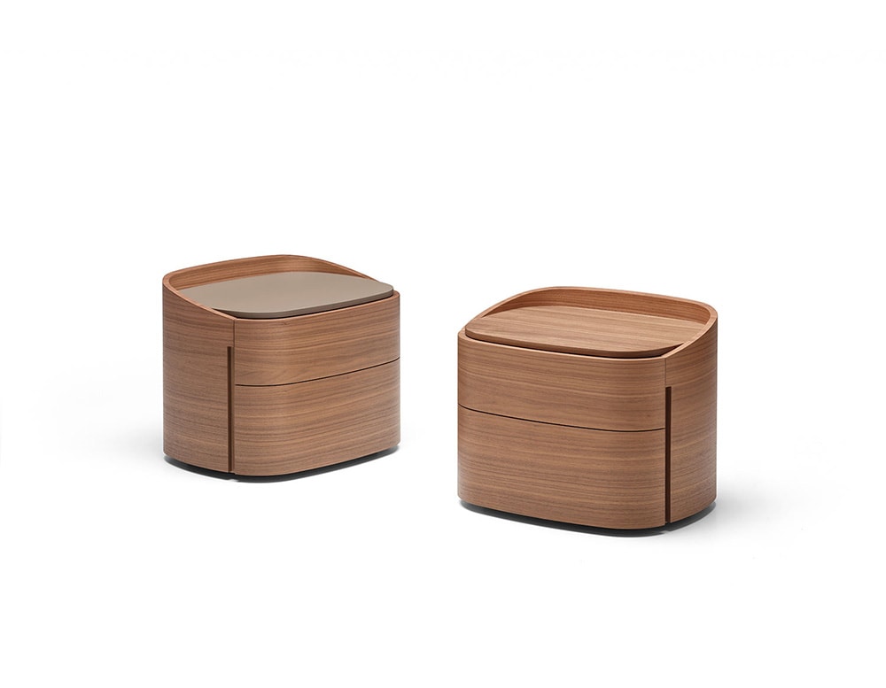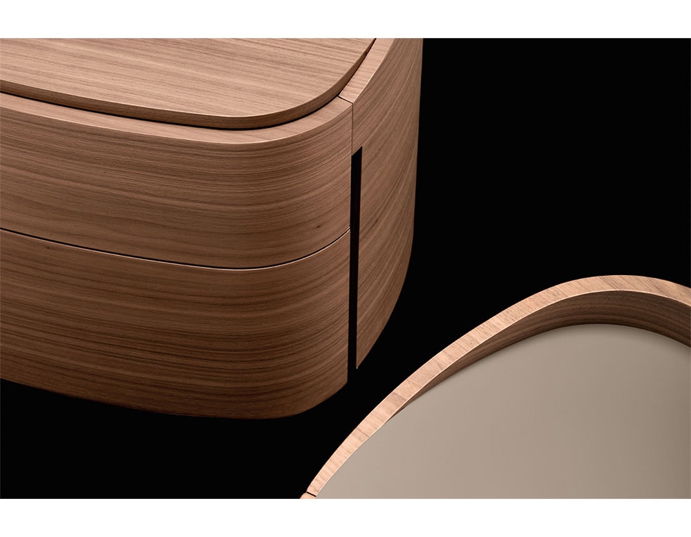 The bedtime tables and set of drawers interpret classical roundness that is never outdated. The wood structure matches with tops in the same material or matt or glossy lacquered. The unit can also be provided with a 20mm top in other materials or finishes.