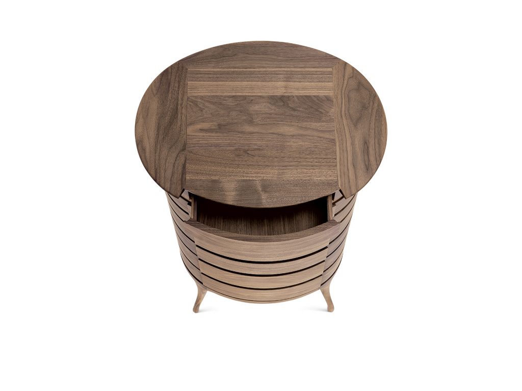 Ovoid shaped chest of drawers with 7 drawers of different sizes, made in solid american walnut.