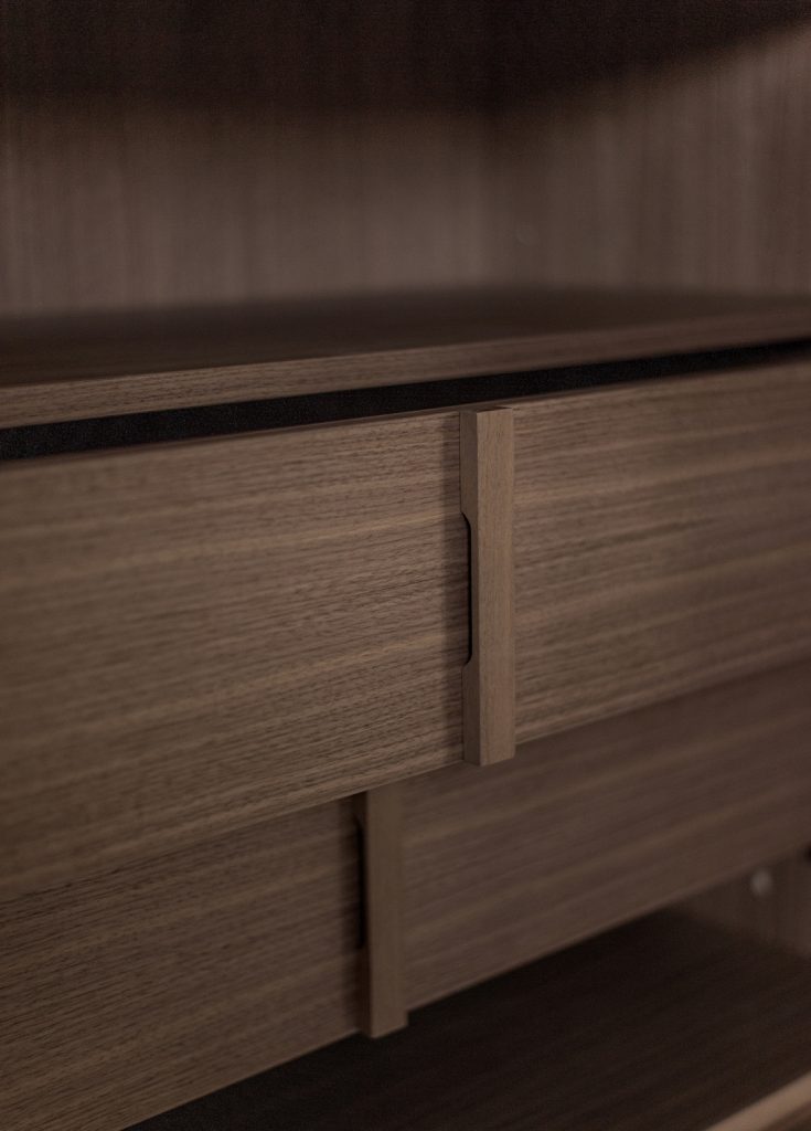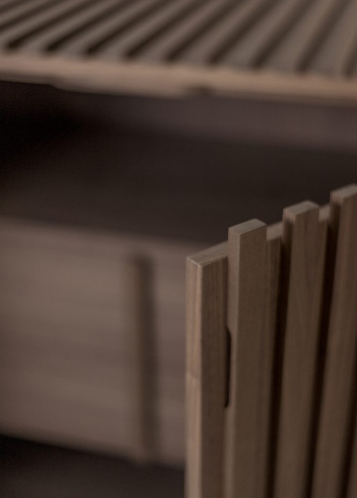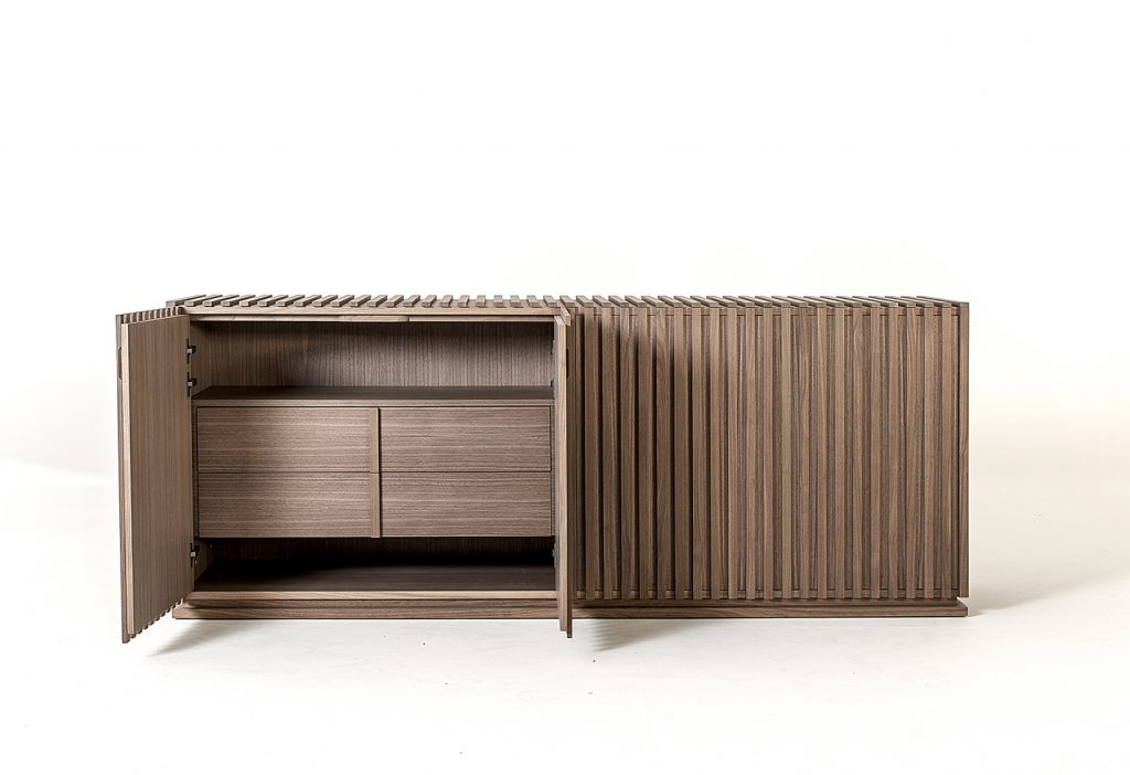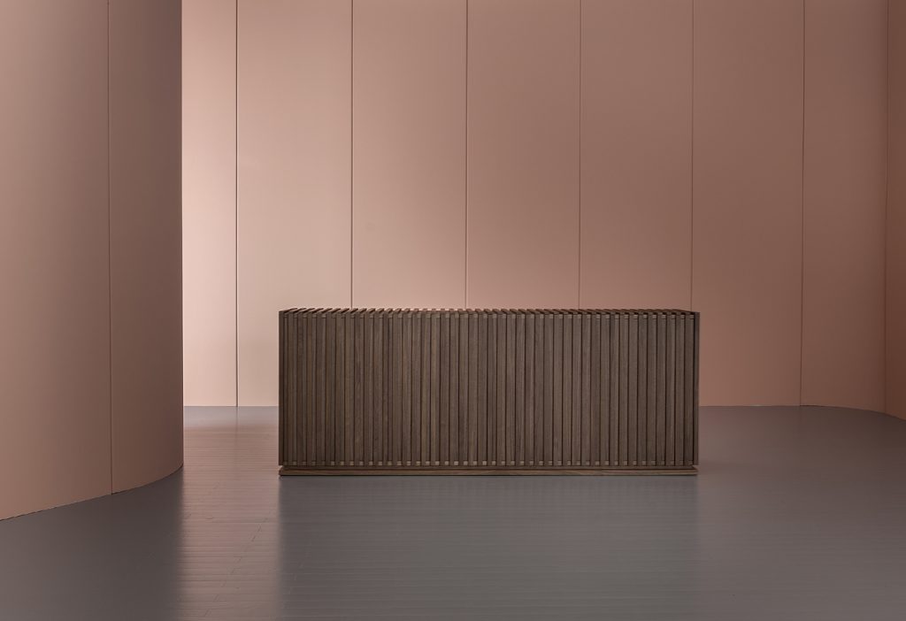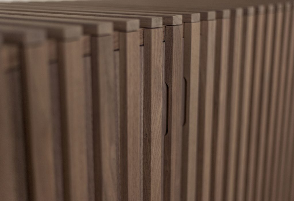 Bars is a family of storage units characterized by the alternation of wooden stripes. The structure, proposed in high or low version, is made of veneered or lacquered panels. The stripes, made of solid wood, decorate the entire structure or only the doors. Inner spaces equipped with shelves in the same veneer of the structure. Upon request, sets of two drawers in veneer are also available.