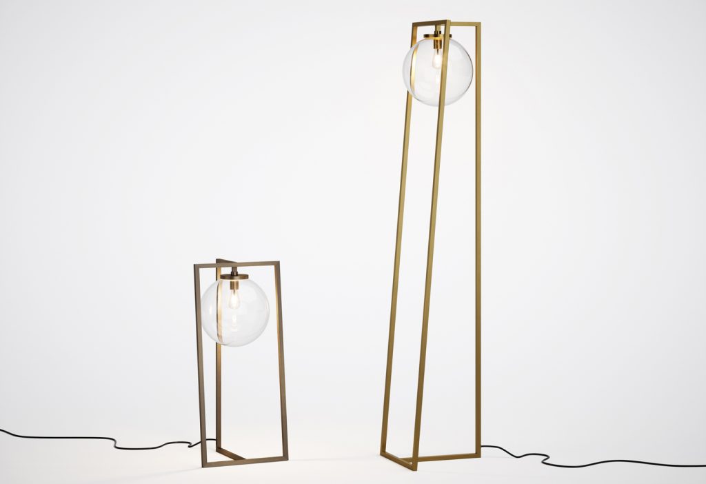 In the idea of Bellagio, the design approach wants to make fi ne and light the shape and to describe the values of simplicity and beauty. An elegant and inclined plane, a square that meets the circle and a thin frame in brass, that acts as perimeter for the sphere, are the result of the search for the most suitable and emotional shape to support the light source. As basic approach, the will to reinterpret the frame with a new line, giving the idea of a no-interfering volume. The square section, with its fi ne lines at a right angle, exalts the shape of this lamp, proposed in different dimensional versions. The frame allows the sphere to be elegantly supported and the possibility to regulate the luminous intensity makes it suitable for any space.