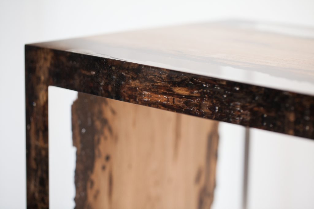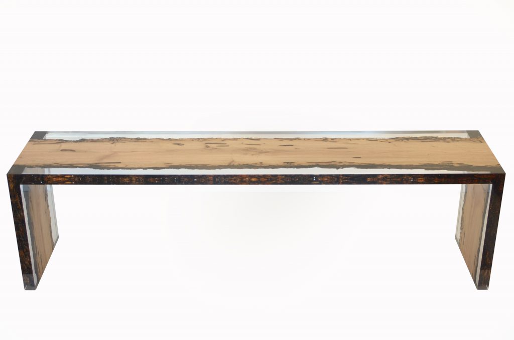 Bent _ Bench is made with a single BRICCOLA solid OAK WOOD plank, extract from the Venice canals, preserved in EXTRACLEAR RESIN resembling the Lagoon water. New alcarol's invisible corner joining ensures the continuity of both material, without visible separations between horizontal and vertical planes, like a single bent piece. The natural wood surface is not covered by resin on the section planes since alcarol always use a selective wood coating with a matt natural effect. According to alcarol's idea of environmental cross-section, the pieces of Bricola Collection re-use and gives new life to Oak poles recovered in the Venice Lagoon. During the years in the canals, these poles are subjected to unremitting  labour of lagoon molluscs and atmospheric agents that carve and sculpt the wood, so that each piece is unique. Using a patented and elaborated resination process, alcarol preserves intact the natural and peculiar live edges, filling the gaps and capturing the underwater air bubbles that bring the wood back to the original look and conditions.  At the same time, the natural wood surface on the section planes is not not covered by resin, in order to guarantee a different experience of touch and sight, and to give their essential characteristics: warmth and matt porosity from natural wood, elegance and evocative transparency from the resin.Bent _ Bench is made with a single BRICCOLA solid OAK WOOD plank, extract from the Venice canals, preserved in EXTRACLEAR RESIN resembling the Lagoon water. New alcarol's invisible corner joining ensures the continuity of both material, without visible separations between horizontal and vertical planes, like a single bent piece. The natural wood surface is not covered by resin on the section planes since alcarol always use a selective wood coating with a matt natural effect. According to alcarol's idea of environmental cross-section, the pieces of Bricola Collection re-use and gives new life to Oak poles recovered in the Venice Lagoon. During the years in the canals, these poles are subjected to unremitting  labour of lagoon molluscs and atmospheric agents that carve and sculpt the wood, so that each piece is unique. Using a patented and elaborated resination process, alcarol preserves intact the natural and peculiar live edges, filling the gaps and capturing the underwater air bubbles that bring the wood back to the original look and conditions.  At the same time, the natural wood surface on the section planes is not not covered by resin, in order to guarantee a different experience of touch and sight, and to give their essential characteristics: warmth and matt porosity from natural wood, elegance and evocative transparency from the resin.Bent _ Bench is made with a single BRICCOLA solid OAK WOOD plank, extract from the Venice canals, preserved in EXTRACLEAR RESIN resembling the Lagoon water. New alcarol's invisible corner joining ensures the continuity of both material, without visible separations between horizontal and vertical planes, like a single bent piece. The natural wood surface is not covered by resin on the section planes since alcarol always use a selective wood coating with a matt natural effect. According to alcarol's idea of environmental cross-section, the pieces of Bricola Collection re-use and gives new life to Oak poles recovered in the Venice Lagoon. During the years in the canals, these poles are subjected to unremitting  labour of lagoon molluscs and atmospheric agents that carve and sculpt the wood, so that each piece is unique. Using a patented and elaborated resination process, alcarol preserves intact the natural and peculiar live edges, filling the gaps and capturing the underwater air bubbles that bring the wood back to the original look and conditions.  At the same time, the natural wood surface on the section planes is not not covered by resin, in order to guarantee a different experience of touch and sight, and to give their essential characteristics: warmth and matt porosity from natural wood, elegance and evocative transparency from the resin.Bent _ Bench is made with a single BRICCOLA solid OAK WOOD plank, extract from the Venice canals, preserved in EXTRACLEAR RESIN resembling the Lagoon water. New alcarol's invisible corner joining ensures the continuity of both material, without visible separations between horizontal and vertical planes, like a single bent piece. The natural wood surface is not covered by resin on the section planes since alcarol always use a selective wood coating with a matt natural effect. According to alcarol's idea of environmental cross-section, the pieces of Bricola Collection re-use and gives new life to Oak poles recovered in the Venice Lagoon. During the years in the canals, these poles are subjected to unremitting  labour of lagoon molluscs and atmospheric agents that carve and sculpt the wood, so that each piece is unique. Using a patented and elaborated resination process, alcarol preserves intact the natural and peculiar live edges, filling the gaps and capturing the underwater air bubbles that bring the wood back to the original look and conditions.  At the same time, the natural wood surface on the section planes is not not covered by resin, in order to guarantee a different experience of touch and sight, and to give their essential characteristics: warmth and matt porosity from natural wood, elegance and evocative transparency from the resin.