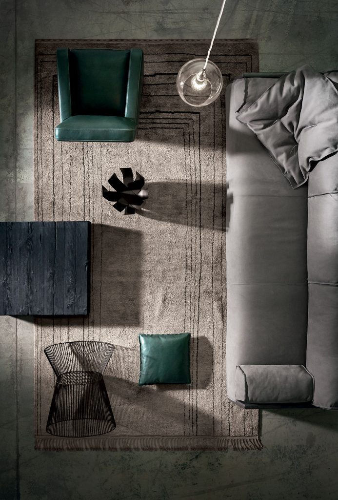 This rug is completely hand-knotted on traditional vertical looms in hand-spun wool, following the features of the Berber-Moroccan rugs of the beginning of '900. The ?nishing process is very elaborate: after the ?rst shave and the handwash, every single rug is handled in order to create a unique product: a skilled craftsman works on the surface with scissors, in order to give it the typical irregularities of the original rugs. On one side a selvage is created, matching with the design pattern and decorated with a woolen stitching. On the other side, fringes are woven one by one, following the style of the old Berber rugs. The b/w version is carried out through the use of non-dyed wools, while the other versions involve the use of vegetable dyes. For the standard maintenance of rugs, vacuum regularly with rotating brushes to remove dust and other residues. To remove stains use a suitable professional non-powder detergent, without applying it directly on the stain, but rather in small quantities on a cloth. For stains on wool rugs use special pH-neutral products, taking care to remove any residue. The area concerned should then be dried as much as possible with a clean cloth. To wash it is advisable to consult a specialist dry cleaner.