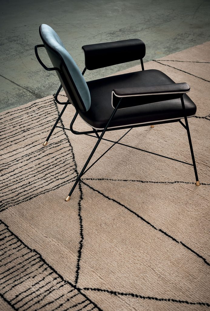 This rug is completely hand-knotted on traditional vertical looms in hand-spun wool, following the features of the Berber-Moroccan rugs of the beginning of '900. The ?nishing process is very elaborate: after the ?rst shave and the handwash, every single rug is handled in order to create a unique product: a skilled craftsman works on the surface with scissors, in order to give it the typical irregularities of the original rugs. On one side a selvage is created, matching with the design pattern and decorated with a woolen stitching. On the other side, fringes are woven one by one, following the style of the old Berber rugs. The b/w version is carried out through the use of non-dyed wools, while the other versions involve the use of vegetable dyes. For the standard maintenance of rugs, vacuum regularly with rotating brushes to remove dust and other residues. To remove stains use a suitable professional non-powder detergent, without applying it directly on the stain, but rather in small quantities on a cloth. For stains on wool rugs use special pH-neutral products, taking care to remove any residue. The area concerned should then be dried as much as possible with a clean cloth. To wash it is advisable to consult a specialist dry cleaner.
