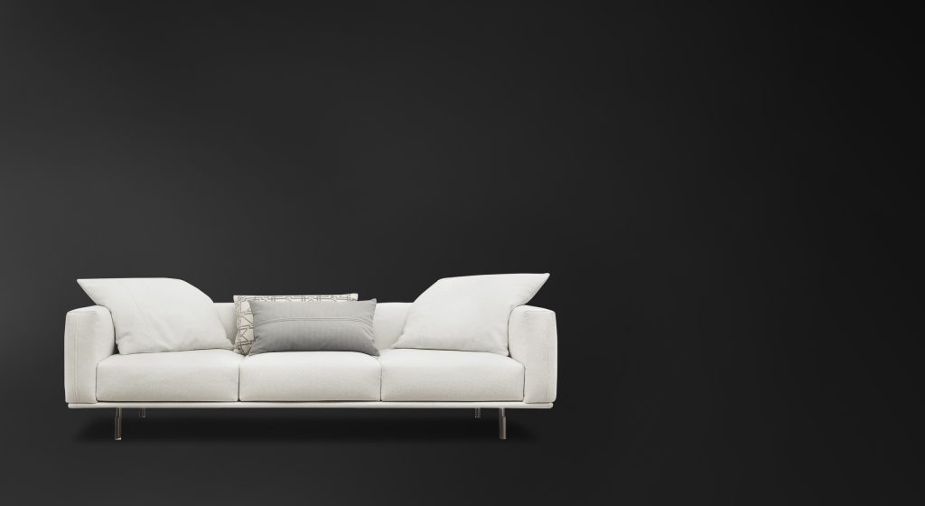 Two- or three-seater linear sofas with noble, reassuring esthetics. The clean, geometric and sharp lines are joined by the light touch of the double feet that raise it from the ground. A moderate seat depth and a compact backrest illustrate the accurate study of the proportions, to guarantee outstanding comfort. Large feather cushions, that can be scattered randomly, repeat the relief stitching of the sofa's armrests, giving the composition a distinctive, elegant and contemporary appearance. Available with completely removable leather or fabric covers. The feet are supplied with a matt burnished finish.