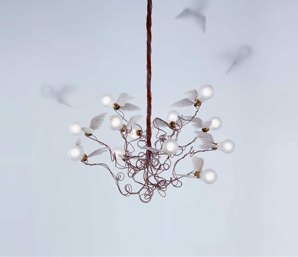 Metal, 12 low-voltage bulbs, goose-feather wings. Also availabe in Metal, 12 LED-bulbs, goose-feather wings.