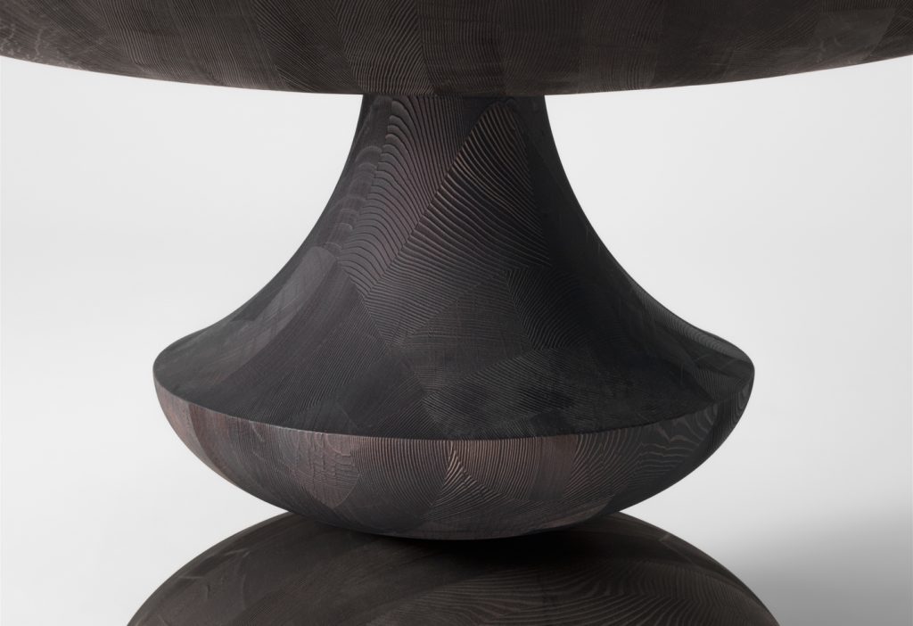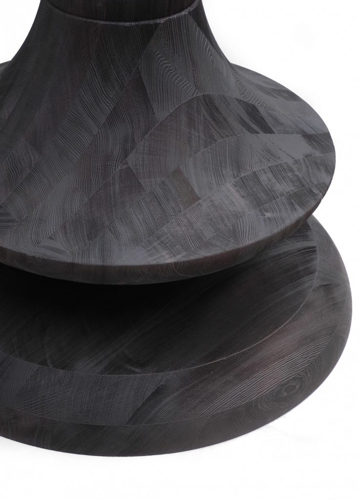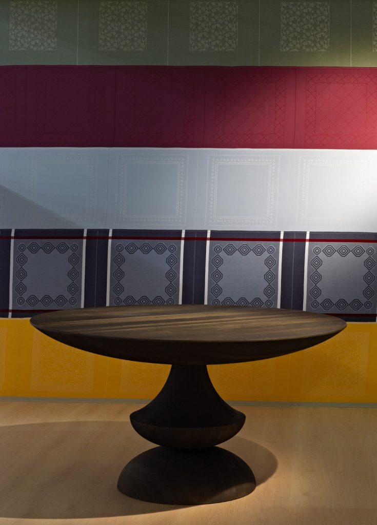 Round or square tables made in solid hemlock wood, with hand-brushed surfaces. Finishes in natural transparent or tinted as per our samples or mat lacquered.