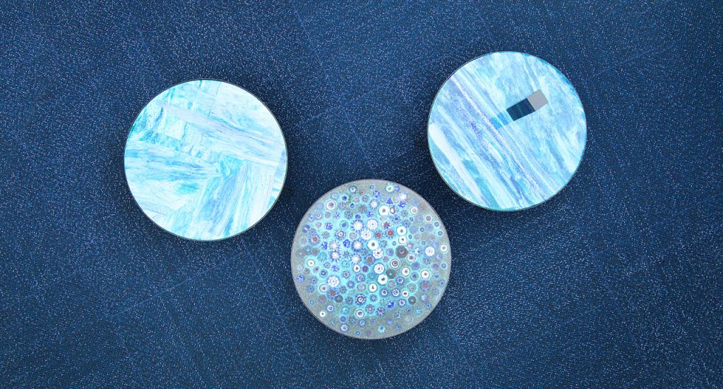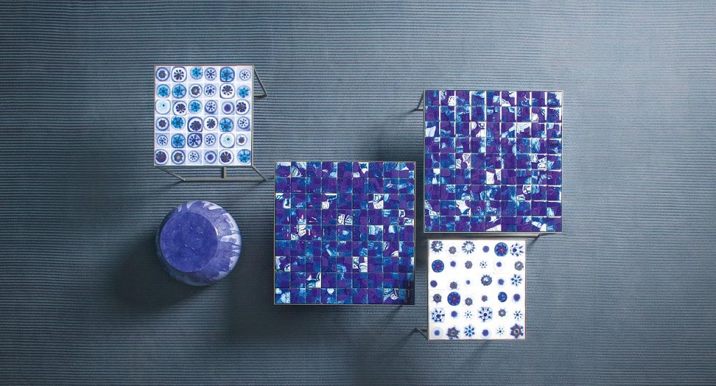 Series of side tables available in different dimensions. - Structure: powder varnished stainless steel in avorio or grigio scuro color, plastic spacers. - Support surface: made of varnished aluminum in a color matching the structure, for tables composed of more tesserae only. - Top: single element in lava stone hand-decorated with glass composed of elements in stoneware hand-decorated with glass. - Notes: The top décor is made by hand by Nerosicilia and makes every single piece unique. The material, the particular production process, and technique lead to different patterns on each tile, which in turn form tops, which are different from one another, even within the same batch. Irregularity is the featuring characteristics of this production, since it is impossible to guarantee identical tiles, identical tops or identical percentage of material and color in the decorations within the same order and/or in different orders. The stoneware tiles composing the tops of the Bloom side tables can be used also to cover and decorate vertical surfaces. Minimum order: 3 square meters in the same color. This product can be used also in interior environments. *Please note due to the nature of the natural stone materials this product must be brought indoors if the outdoor temperature reaches 32 degrees Fahrenheit or below.*