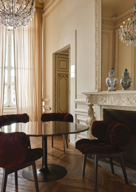 An armchair in the name of softness. Fully upholstered in padded and quilted velvet. The structure is made of ebony-coloured wood.