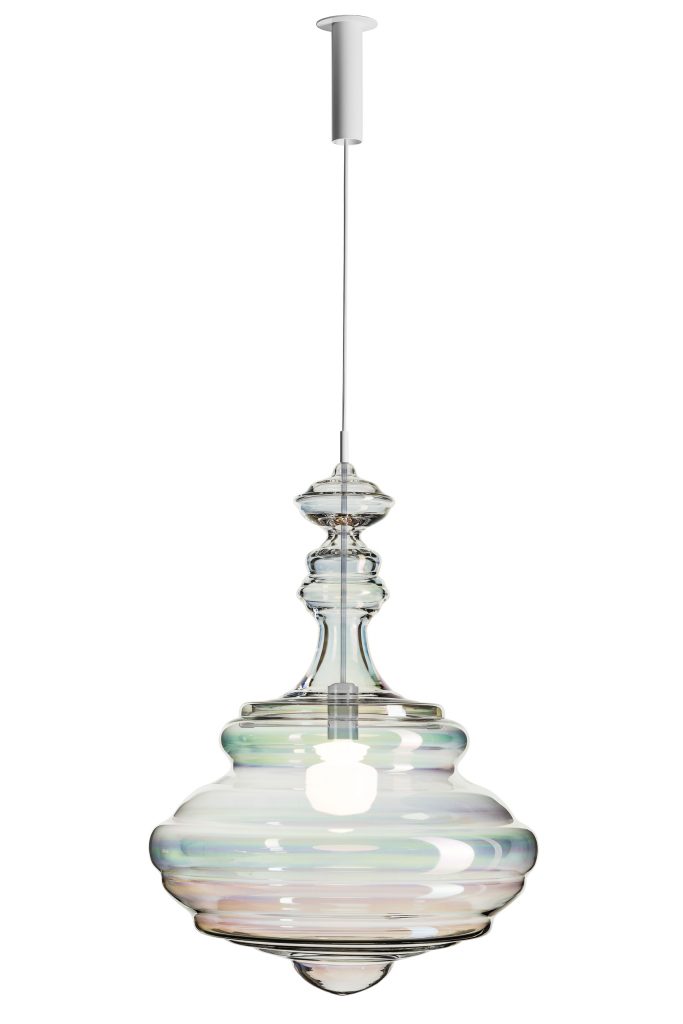 Jan Plechác and Henry Wielgus sketched the shape of the Lasvit Neverending Glory chandeliers by rotating the silhouette around its own axis. The large pieces of glass, for which even the wooden moulds are enormous are so demanding to produce that it would not be possible to create anything bigger. In the individual silhouettes, it is possible to recognize iconic chandeliers from five of the world's most eminent concert halls and theatres; La Scala in Milan, Palais Garnier in Paris, the Metropolitan Opera in New York, the Czech Republic's Estates Theater in Prague, and the Bolshoi Theater in Moscow. Hand blown Bohemian Crystal Glass