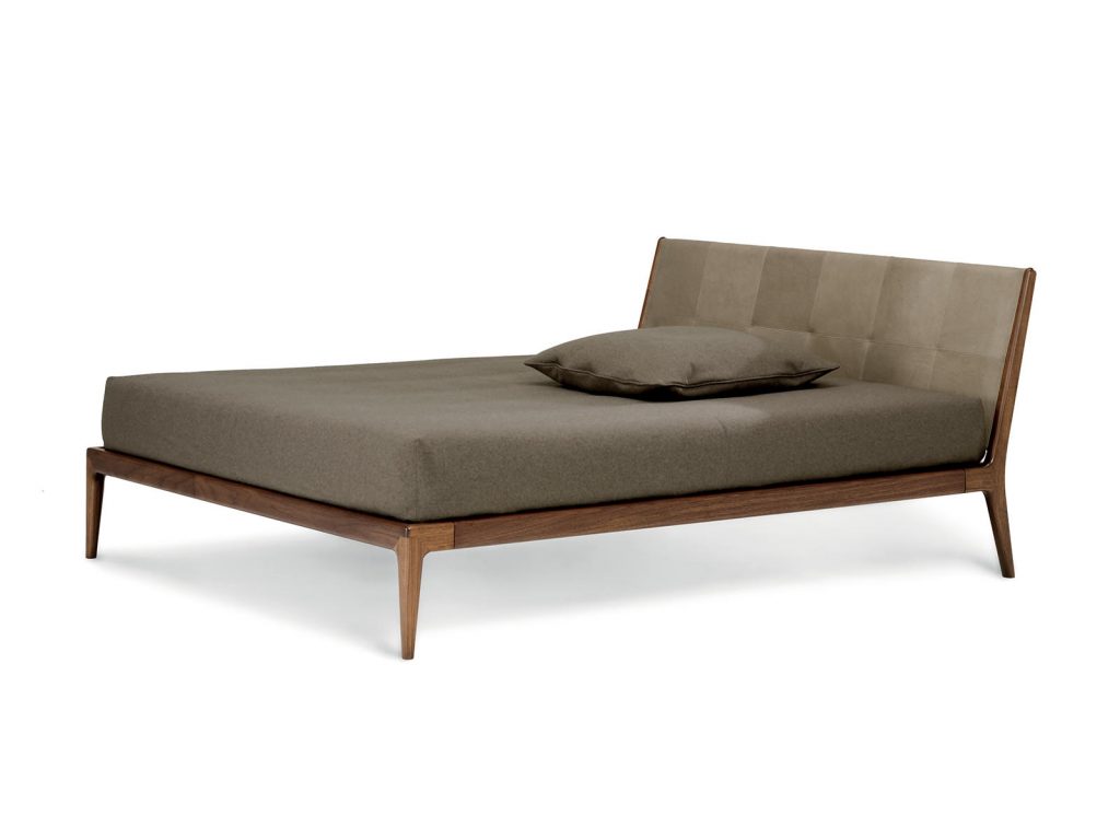 Bed made in solid american walnut, bed base in veneered plywood, upholstered headboard quilted or plain.