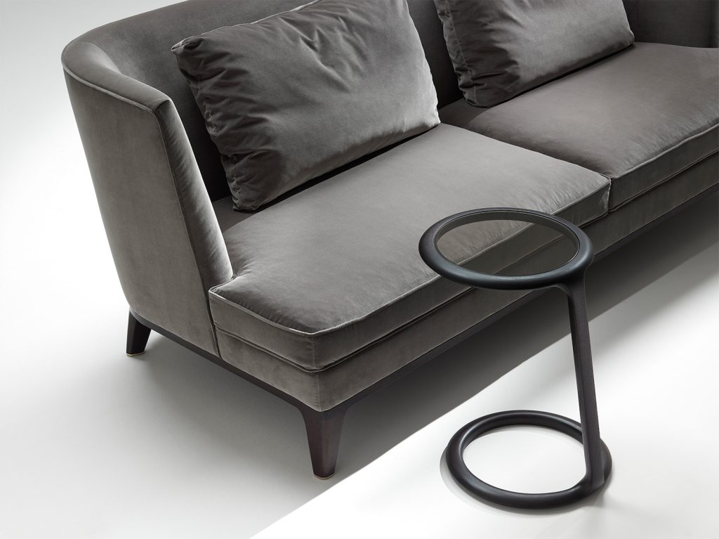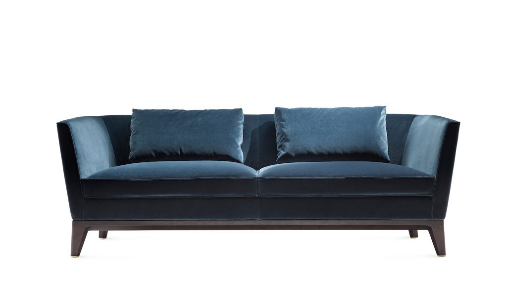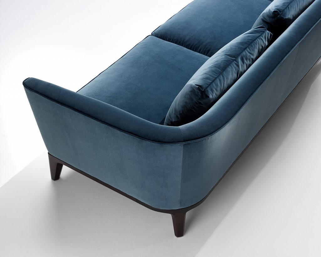 Armchair and sofa with internal structure made in solid wood, base in solid American walnut, cushions covered with non-deformable polyurethane foam of various densities and filled with down.
