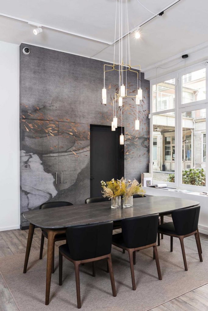 Coffee table with top and structure in hand-brushed aluminium in the colours black or titanium grey.