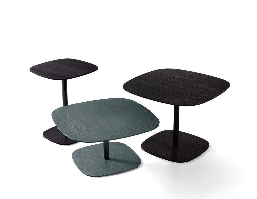 Coffee table with top and structure in hand-brushed aluminium in the colours black or titanium grey.