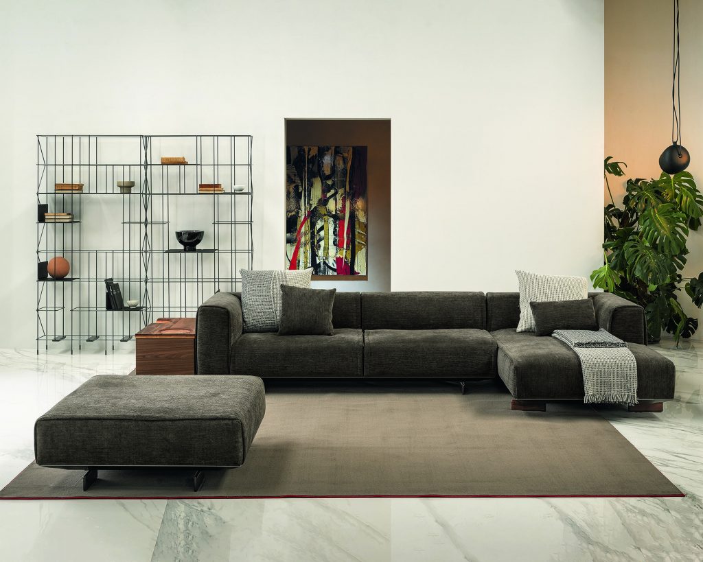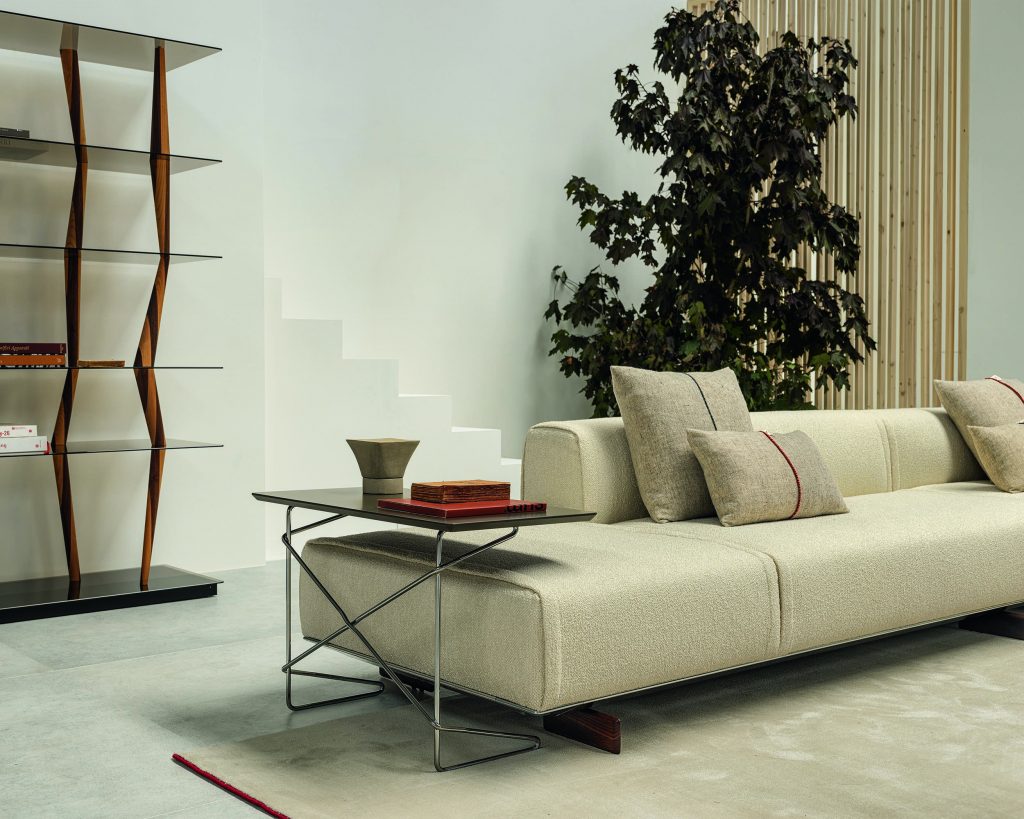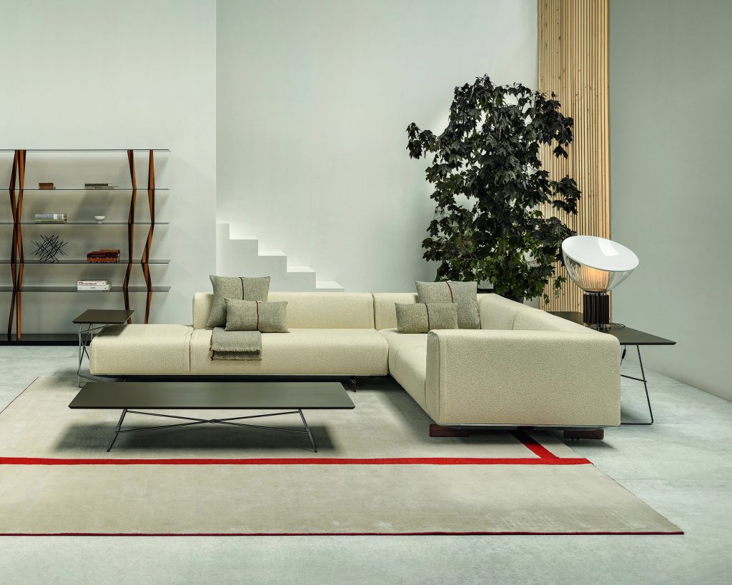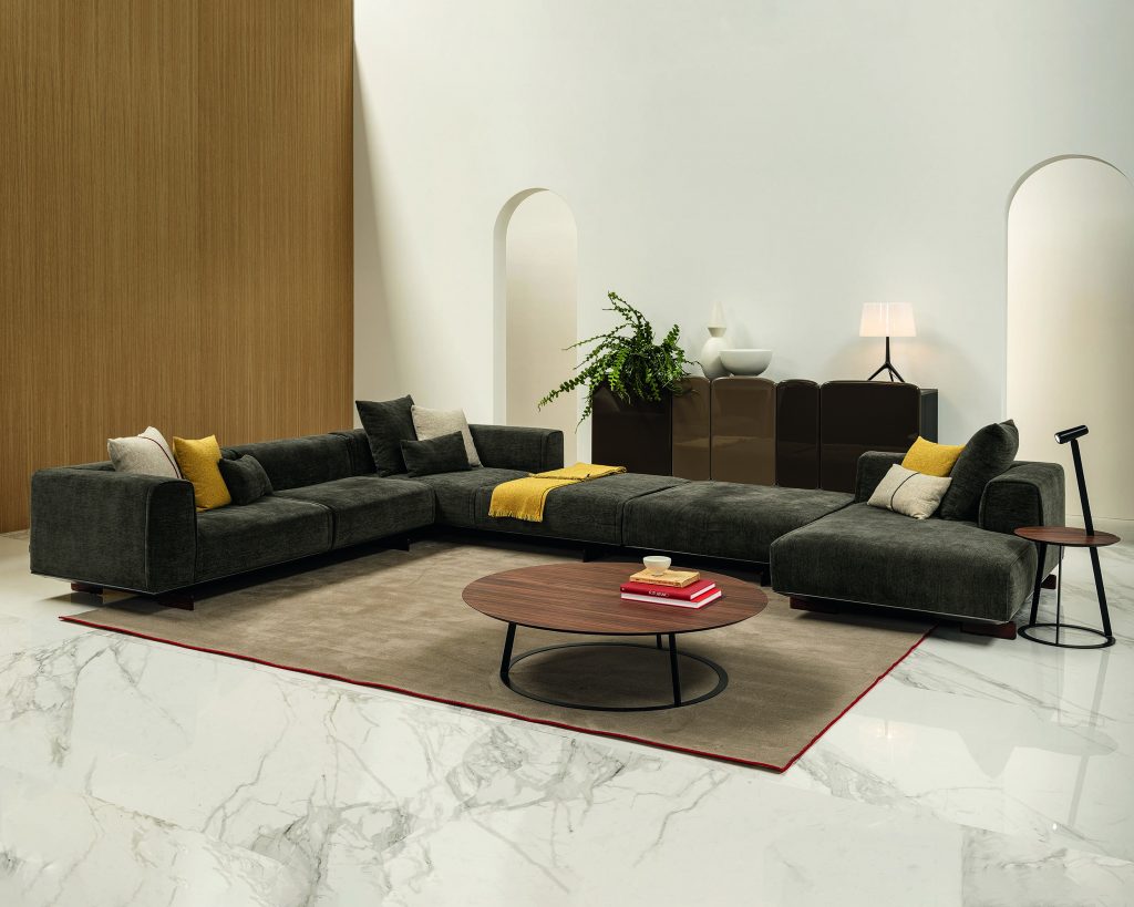 Coleman is one of the five families of the sectional sofa collection designed by Ludovica+Roberto Palomba. The aluminium frame (Horm patent), light and ecological, on which all the padded elements are inserted, is the distinctive feature and the common denominator of the collection, expression of the high tailoring craftsmanship of Made in Italy. The various types of seat and padding at different heights of bearing capacity are designed to ensure maximum comfort. Coleman is a sofa with generous shapes in the backrests and armrests, enveloping and welcoming, embellished with 9cm soap feet, in solid canaletto walnut. Coleman is available in two seat depths: 90 or 105 cm.