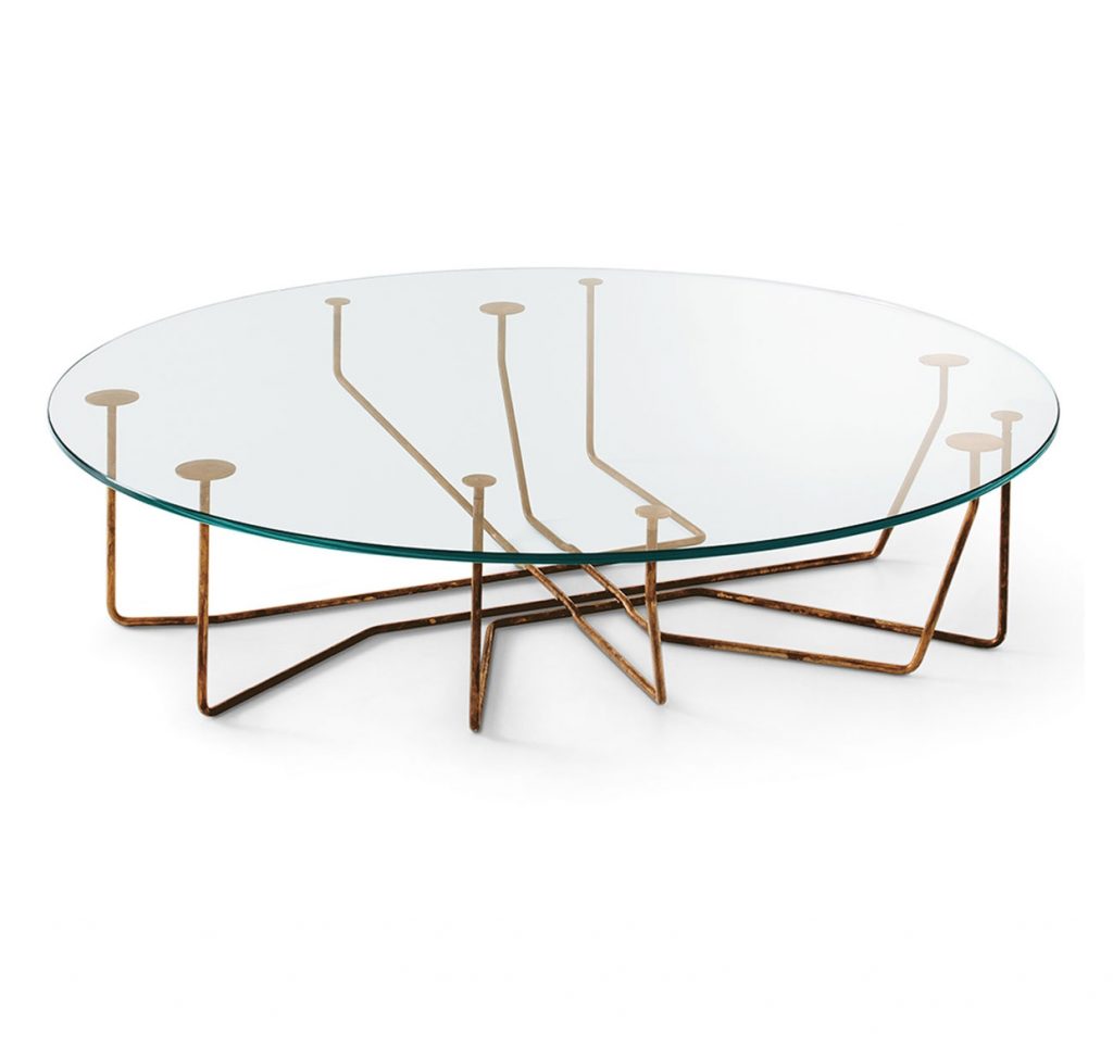 Coffee table with 12mm extralight tempered glass. Structure in hand burnished brass. The hand burnished brass finish looks naturally spotted and irregular. Due to this craftmade processing, each product is unique and exclusive.