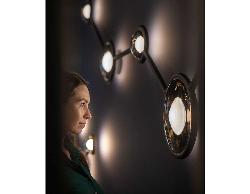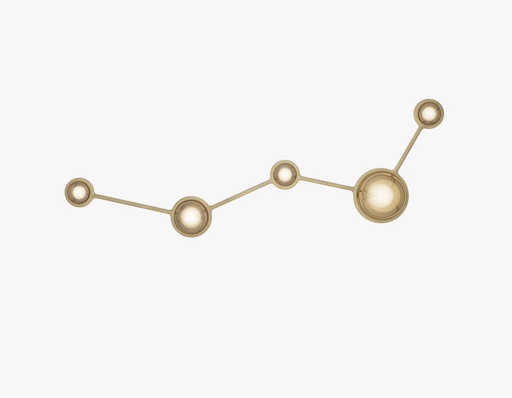 Constellation was designed by American architect and designer David Rockwell. He is the founder of the Rockwell Group, a cross-disciplinary architecture and design firm based in New York City. In fact, it is the city's sky at night that informs the Constellation collection's design. The Grand Central Terminal, with its expansive celestial ceiling mural, is the perfect space to house the Constellation collection uplifting visitors from their daily commute to an ethereal spatial experience. The collection offers a ceiling lamp, a wall sconce and a floor lamp, each representing Cassiopeia, Orion's Belt and Polaris respectively. Hand-crafted metal connects the luminaires in each unique piece, allowing onlookers to feel as if they are staring up into a starry, night sky.Each piece is modular and offered in bespoke configurations. Wherever displayed, the light becomes the focal point of the space, evoking awe and wonder.