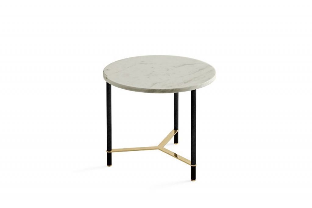 Coofee table with VerdeAlpi, Calacatta Vagli Oro or Bianco Statuario marble top. Available also with inlaid wooden top in the finish "Colore" Frisè Waalnut or in Maple Frisè dark grey. Black hand brushed anodised aluminium and bright brass structure.