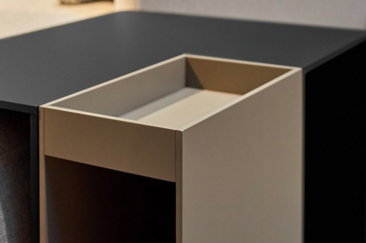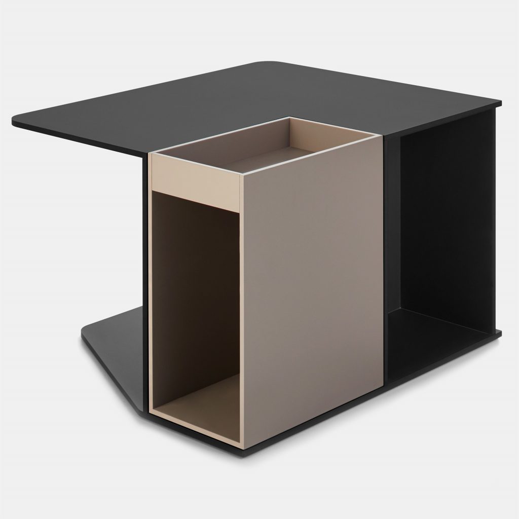 Cosy low table 1 and Cosy low table 2 are coffee table sets designed in large sizes; small architectural solutions with strictly rigorous lines. They also offer low parts for storage.
