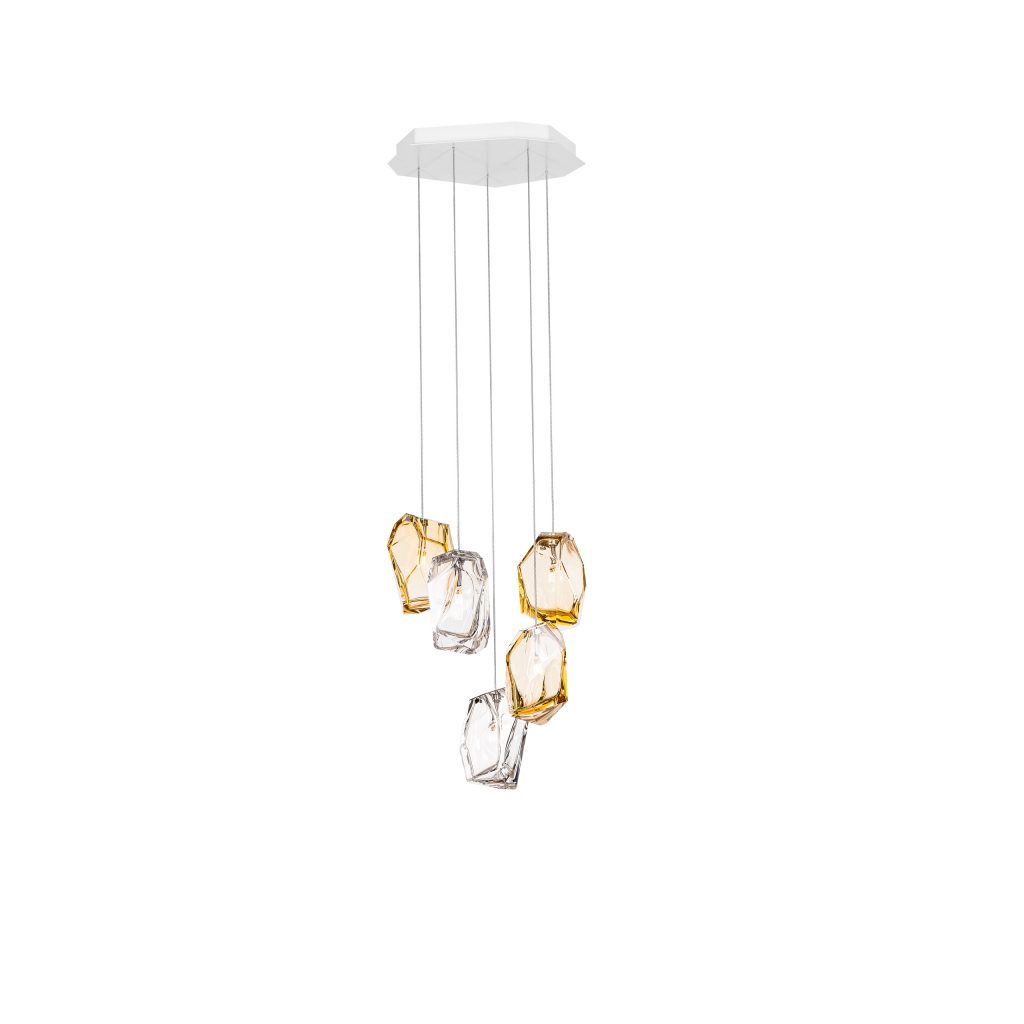 Certainly not from the Stone Age but closer to the fictional Kryptonite, Crystal Rock appears in the cave of the future as an ambassador to the fusion of nature and man, light and reflection, transparency and mass. All these characteristics are gathered within a perfectly cut, yet roughly sculpted contemporary silex. Its multiple reflections and deflections fascinate onlookers during the day and even more at night, when lighted. Hand blown Bohemian Crystal Glass