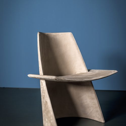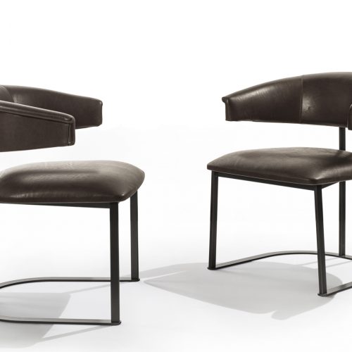 The chair with or without arms designed by Patrick Norguet and launched in 2020, with its coloured elastic strap structure, is now also available in an outdoors version to confirm its identity as ideal for both the home and contract applica-tions. The folded Stainless steel 304 frame, consisting of simple members without screws which are quick and easy to assemble and take apart, is available painted in matt iron grey or black for outdoor. The seat and back are made of elastic straps stretched directly on the frame. The straps themselves are the outcome of research into automotive technology, and offer high performance in terms of resilience, strength and comfort.