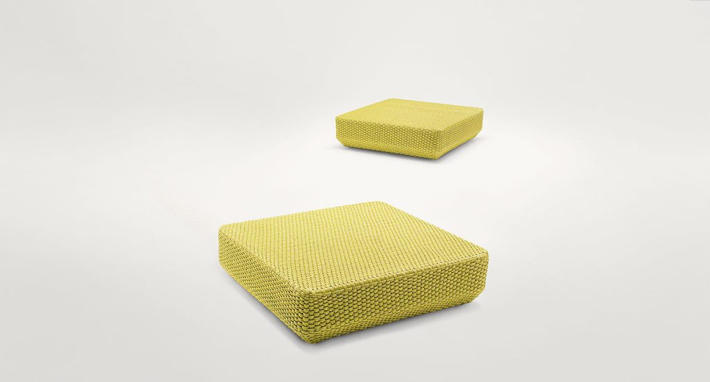 Pouf. The Daydream series also includes a sun bed available in the same finishing. - Structure: varnished stainless steel, plastic spacers. - Upholstery: non removable cover hand woven with Rope cord. - Notes: the use of a Winter Set protection cover is recommended. - Awards: the Daydream series received the Special Mention of 2014 German Design Awards.