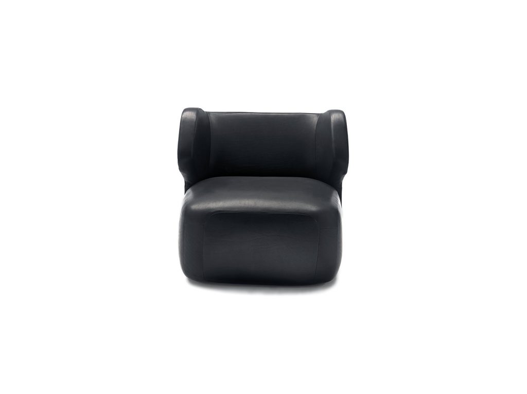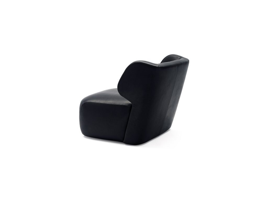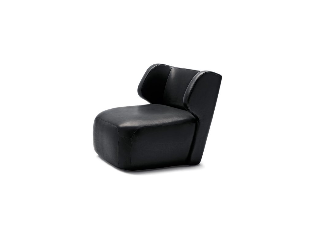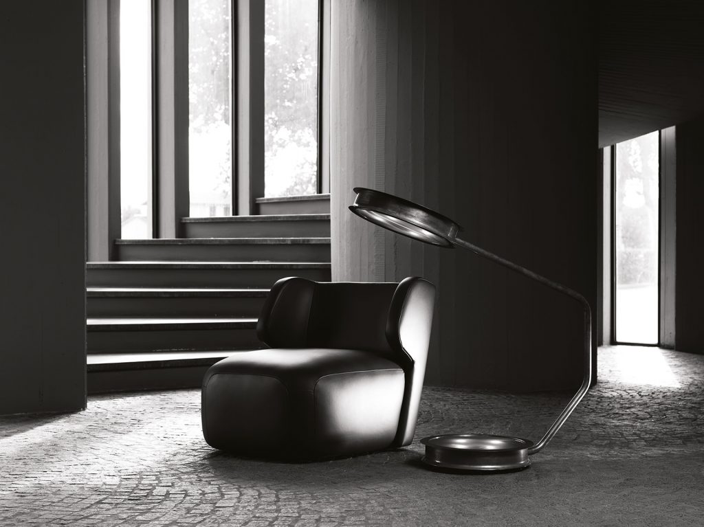 Armchair and pouf made in solid American walnut, seat and back-rest in upholstered plywood.
