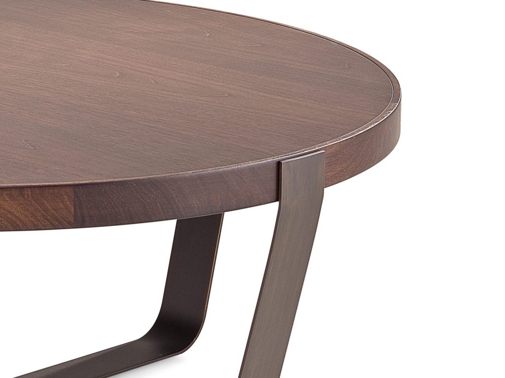Small table with burnished brass base, frame in solid american walnut. Top 6mm glass, wood or burnished brass.
