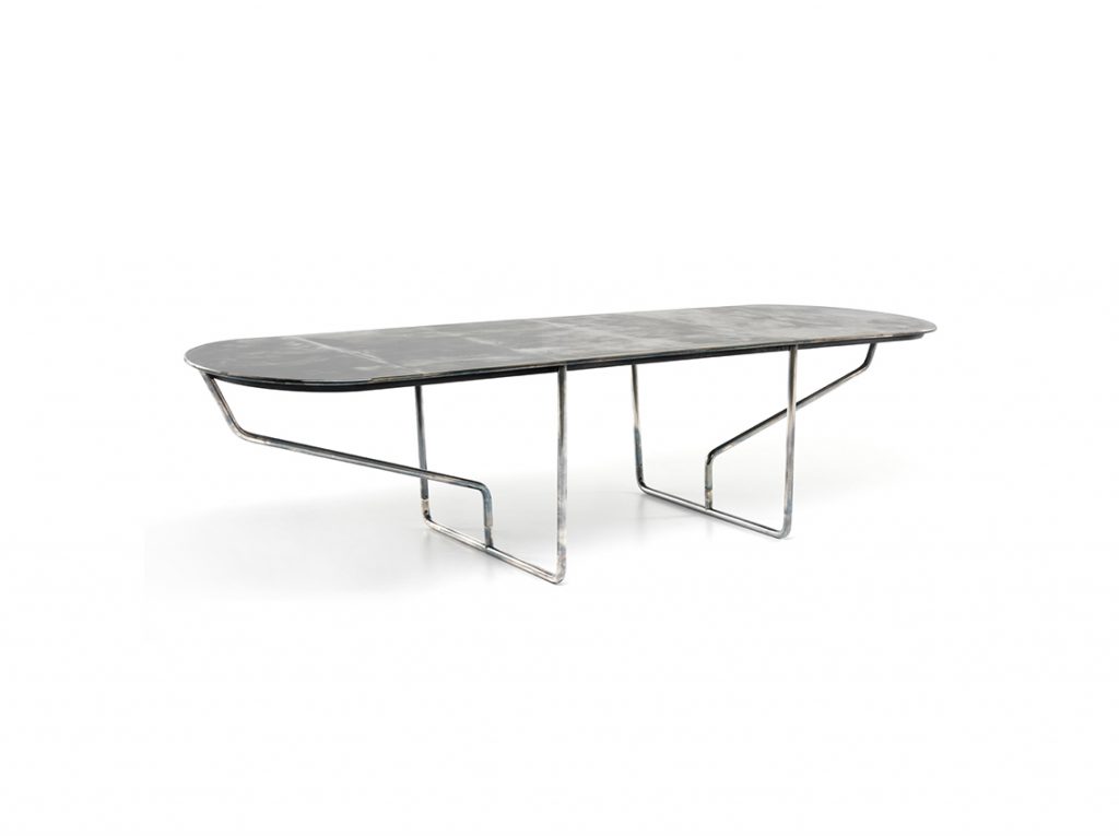 Table made in steel antique silver finish. Cm. L/w 300 - p/d 95 - h 75