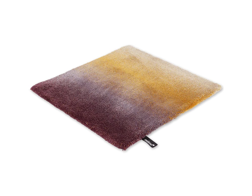 DeViant Rug displays a bold gradient that moves from a deep burgundy to warm amber and golden tones. This vibrant color transition adds rich visual warmth and a sense of artistic expression to any modern space.