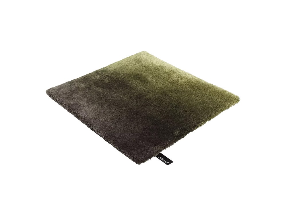DeViant Rug features a plush gradient in earthy tones shifting from deep charcoal to olive green. Its soft texture and rich color palette make it a grounding element in contemporary interior compositions.