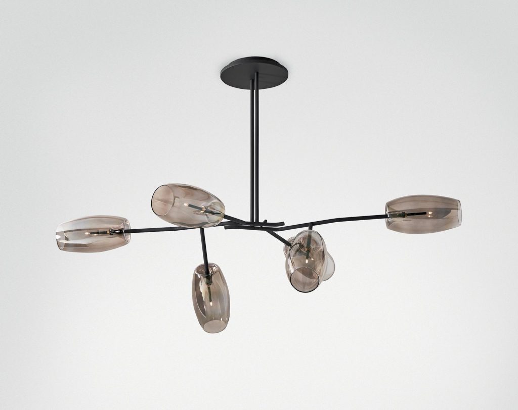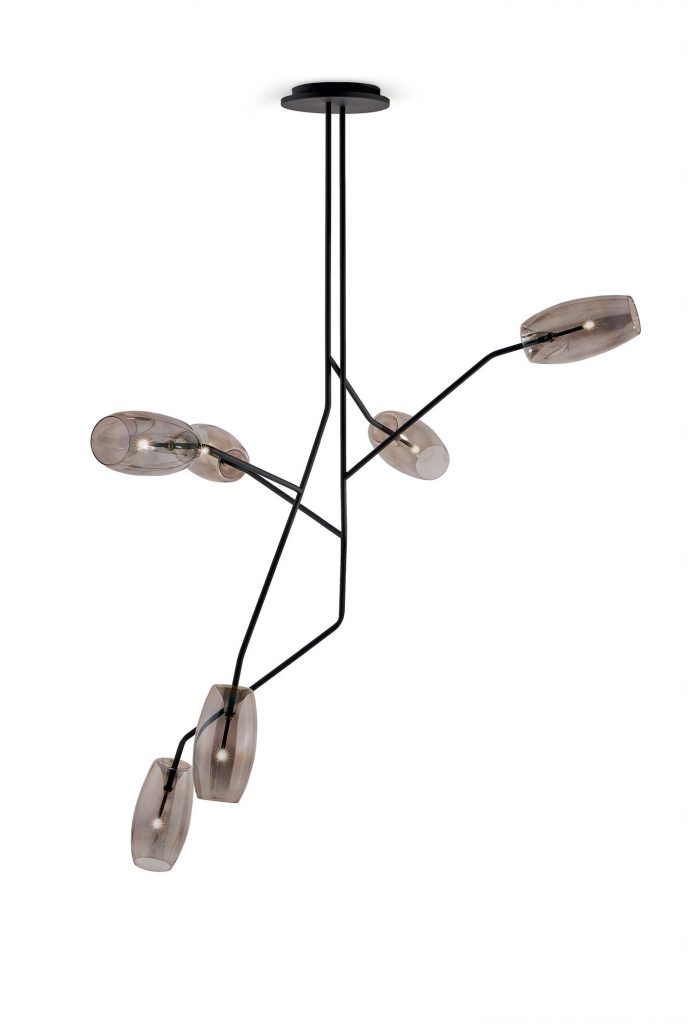 Hanging lamp with LED light (20 Watt). Mouth blown and painted glass. Bronzed black metal parts.