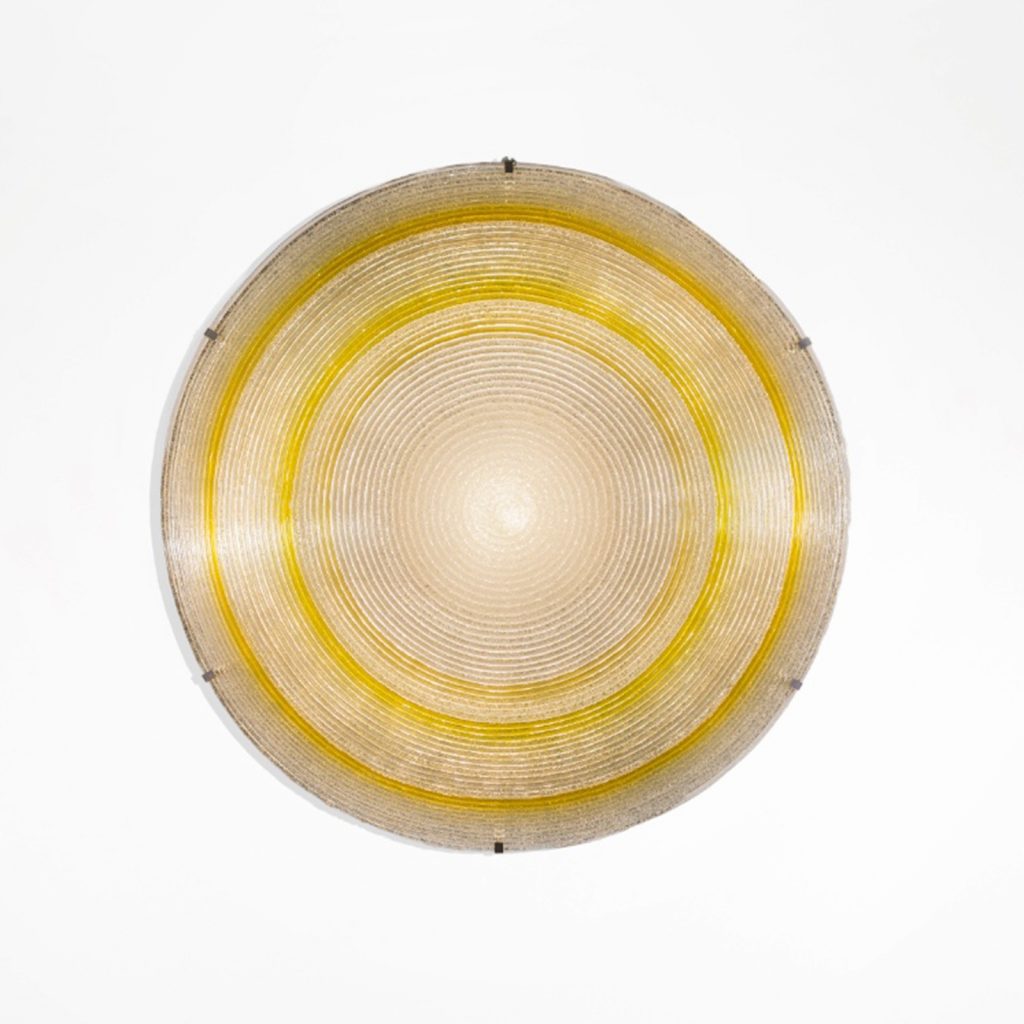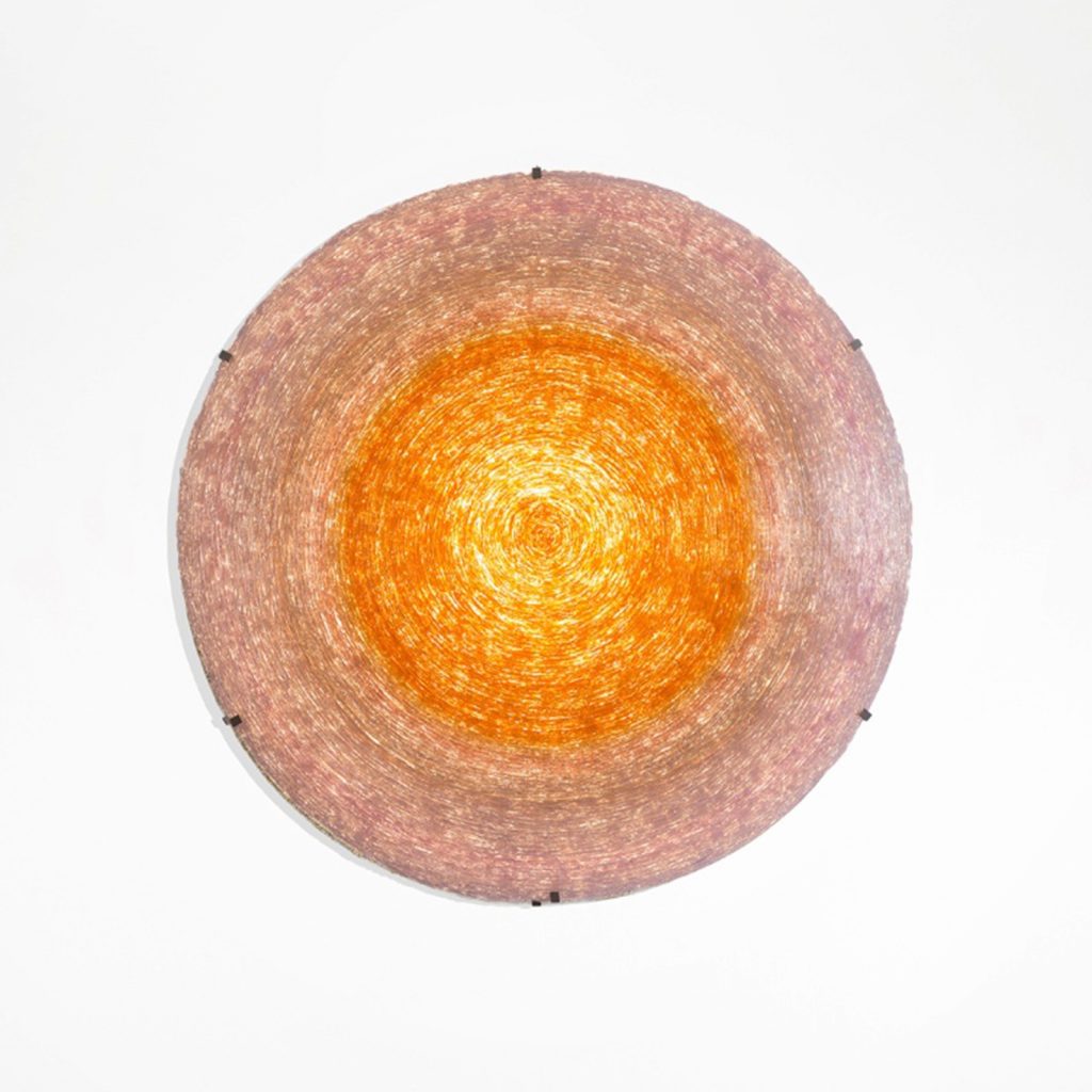 Dischi is a fantastic, daring and colorful design by Italian artist Jacopo Foggini. Working with a machine of his own invention, Foggini heats methacrylate to volcanic temperatures to create thick, colorful threads. Then, he molds the polymer derivate by hand into lit artworks.