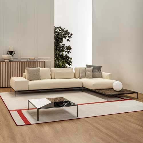 Dizzy is one of the five families of the sectional sofa collection designed by Ludovica+Roberto Palomba. The aluminium frame (Horm patent), light and ecological, on which all the padded elements are inserted, is the distinctive feature and the common denominator of the collection, expression of the high tailoring craftsmanship of Made in Italy. The various types of seat and padding at different heights of bearing capacity are designed to ensure maximum comfort. Dizzy is available in two seat depths: 90 or 105 cm and is available with a tall, thin aluminium foot that lifts the entire structure 13 cm above the floor.