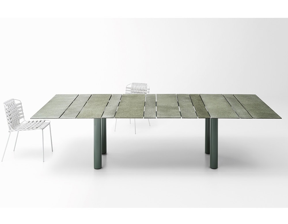 The outer side of the top elements, corresponding to the perimeter of the table, are flared and positioned so as to be slightly spaced from each other.