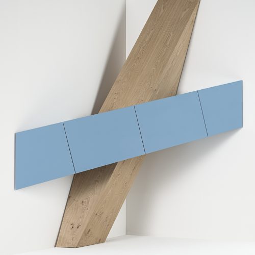 Modular system of tables with 15mm extralight transparent glass tops, painted only in the middle part as per samples in the bright version. 45° bevelled glass top. Wooden base covered by painted glass as per samples. Customized compositions on request. Available with cable management, on request.
